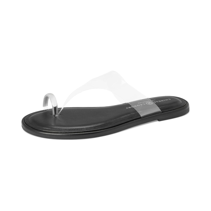 - The Chinese Laundry Maizy Thong Sandal is an essential for fashion-forward woman looking for a mobile upgrade to traverse the warm landscape. Featuring a faux leather insole with padded sock for all-day comfort, a slender thong with a sleek metal toe loop lined with soft synthetic leather, it provides a snug fit without constraining your toes. The slip-on style sandals are designed with a polyurethane upper and an open round-toe shape. Pair with an alluring midi boho dress or corduroy overalls to capture that effortless, urban adventurer look.