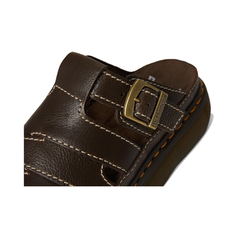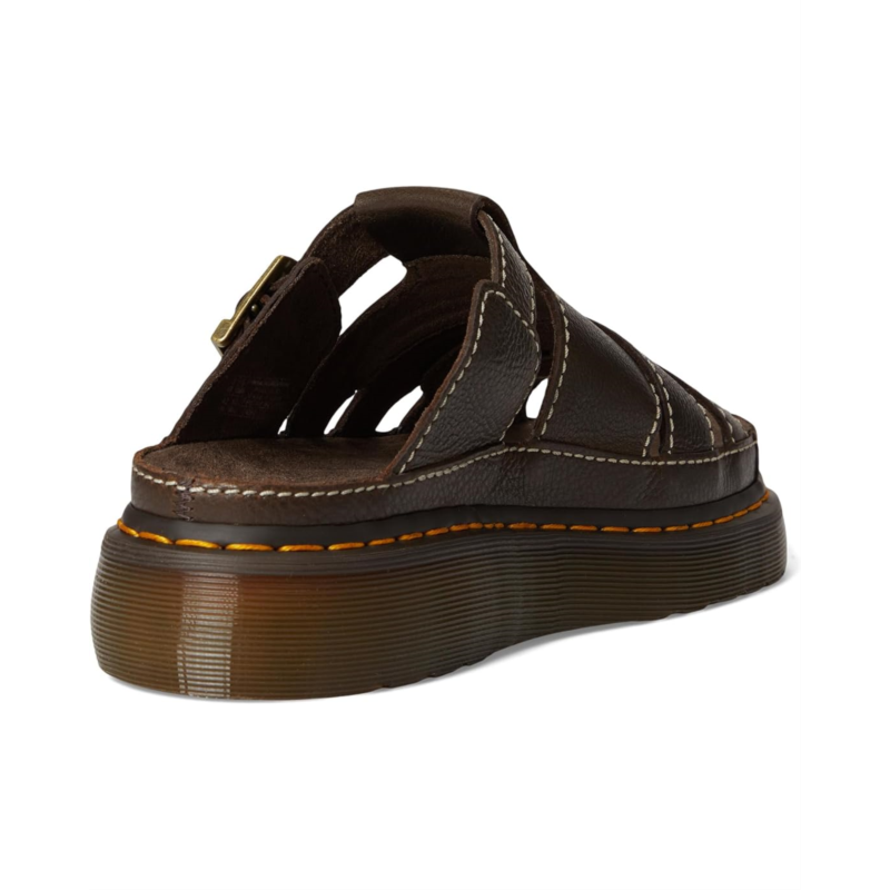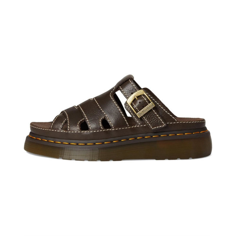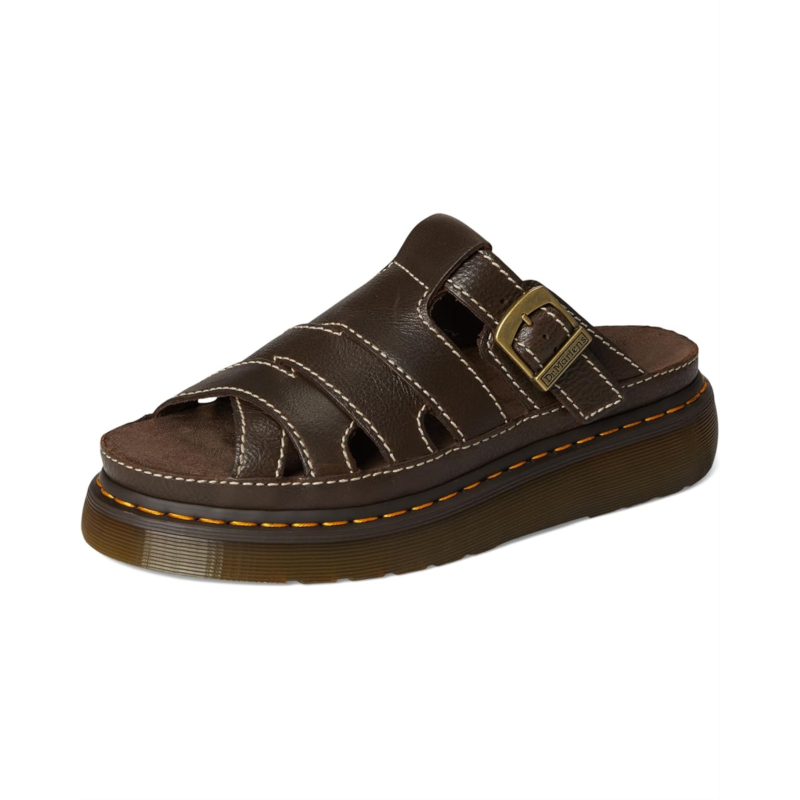 - Air-cushioned, now air-conditioned. 90s-inspired, the Dr. Martens Maxxy Slide is a versatile slip-on sandal with an adjustable buckle strap and small gaps between straps to keep your feet breezy on warmer days. The suede-covered foam footbed and statement platform sole are built for comfort summer after summer. The grooved sole is marked with signature DM''s yellow welt stitching. Featuring open round toe, strappy upper, with buckle detailing, and slip-on style.