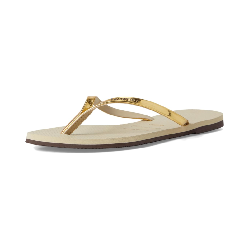- The Havaianas You Metallic Flip Flop Sandal will be your go-to sandal for warm weather fun with a thongkorea construction, embossed logo at the straps, and easy slip-on styling.