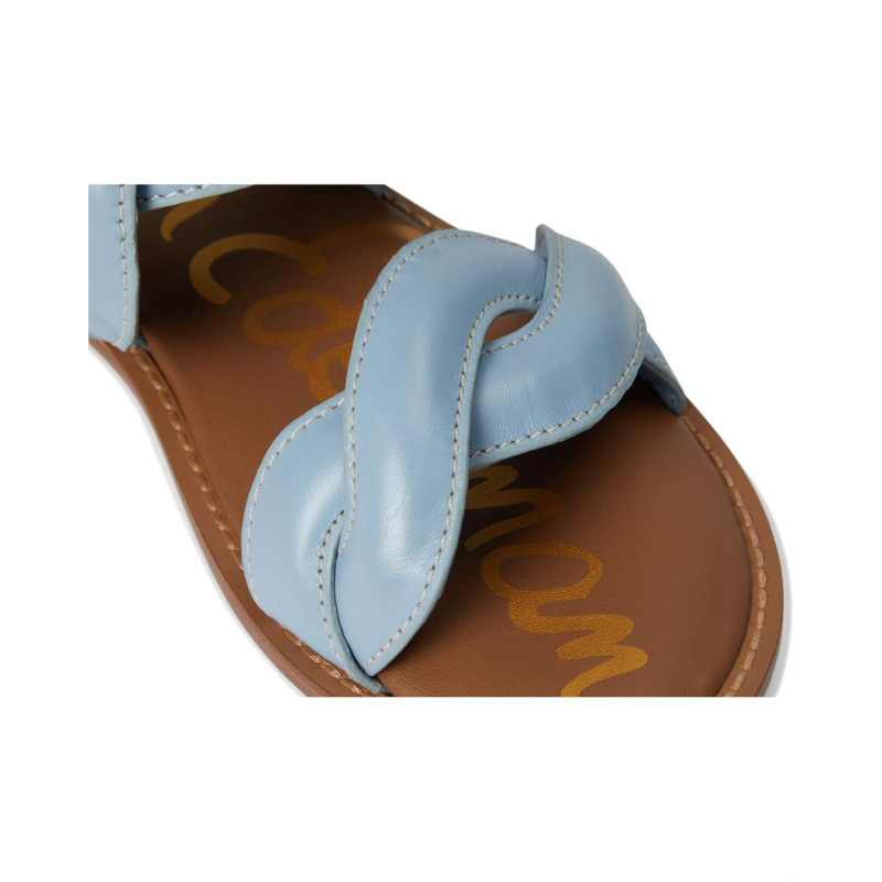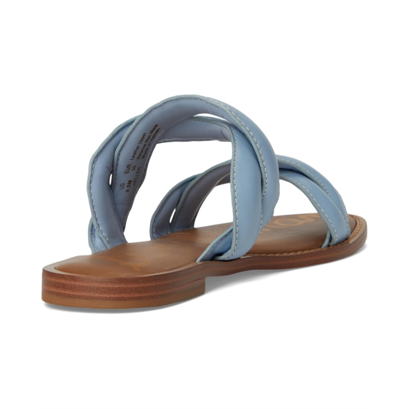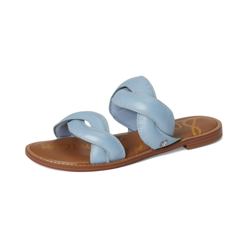 - The timeless design and easy slip-on fit of the Sam Edelman Hellen Sandals make them a must-have for those seeking both style and comfort. The open toe sandals are crafted with a leather upper with two beautifully braided straps, polyurethane lining, and a faux leather insole.