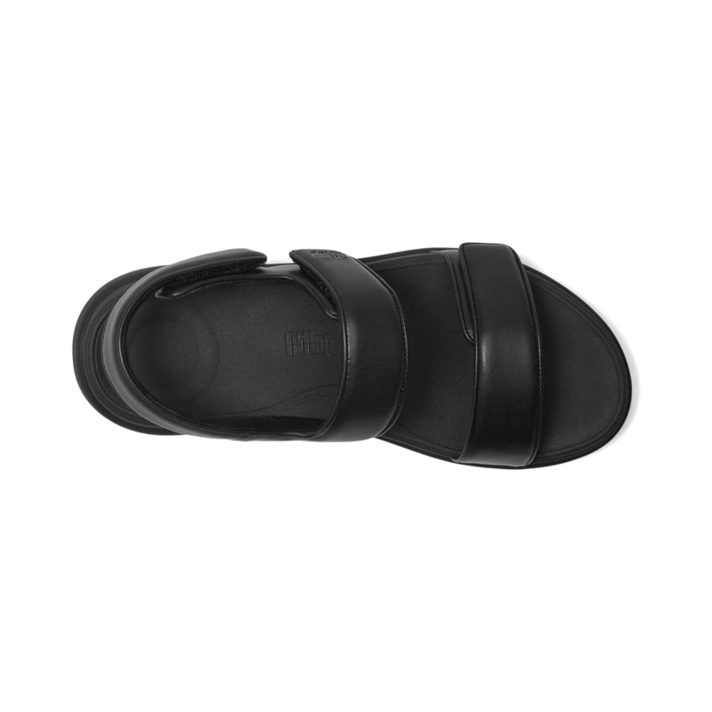 - With the FitFlop F-Mode Go Adjustable Flatform Back-Strap Sandals, FitFlop has created a simple streamlined sandal infused with its signature comfort, Chunky soled, they feature a modern ''stripped-back'' design and fluid lines. The light pressure-diffusing Microwobbleboard midsole has triple-density cushioning that follows 3 footstep stages (firm heel, soft middle, and medium at toes). These sports sandals are made of a padded pillow-soft faux leather upper, rubber insole, and polyester lining. The adjustable hook-and-loop straps offer a perfect fit while the heel and forefoot ''impact pillows'' enhance cushioning. Their two-layer construction offers a new aesthetic and extra flexibility/lightness. These heeled sandals are ergonomically engineered to help optimize your body''s alignment, natural movement, and energy.
