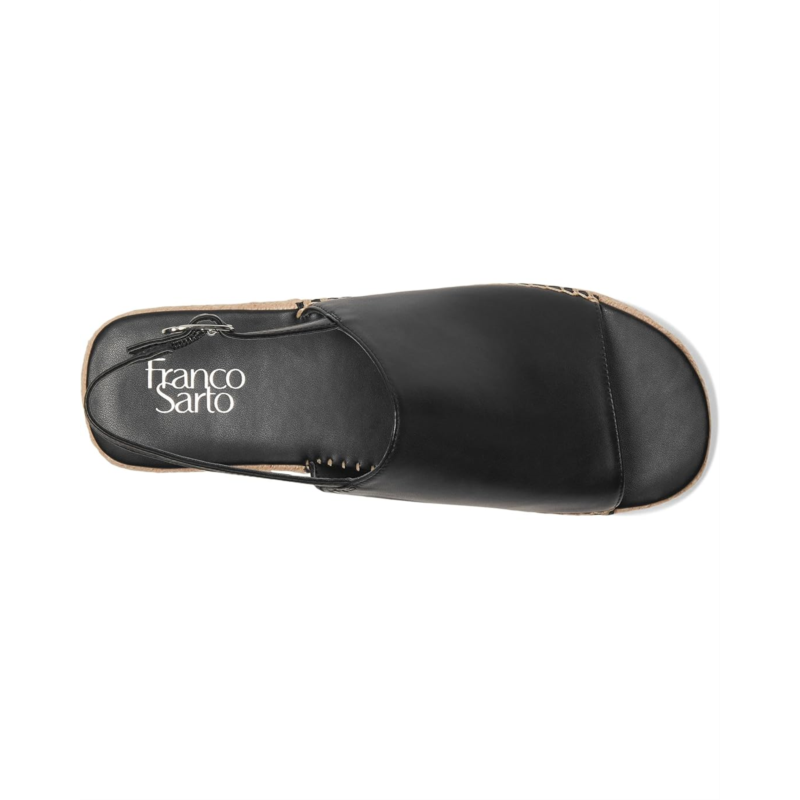 - The Franco Sarto Rune Sandal is an espadrille platform, topped with an elegant leather slingback, which makes for the perfect summer shoe. The sandals are designed with a leather upper, polyurethane lining, and a leather insole. The open-round toe silhouette and slingback strap with hook-and-loop closure ensures a snug fit.