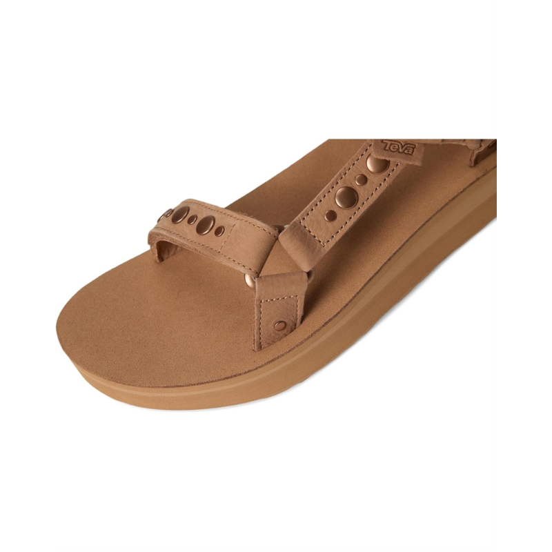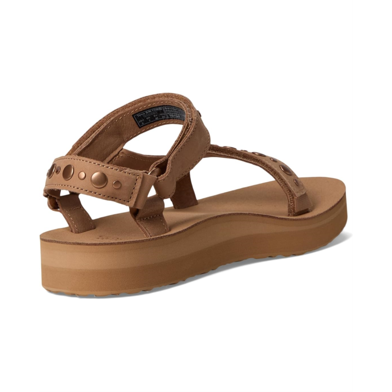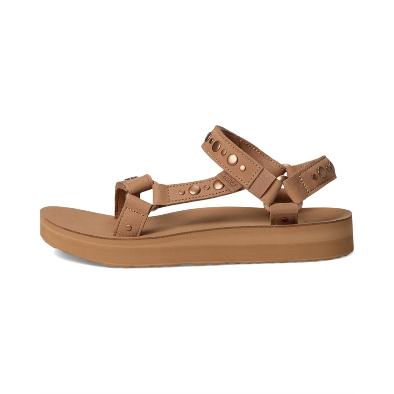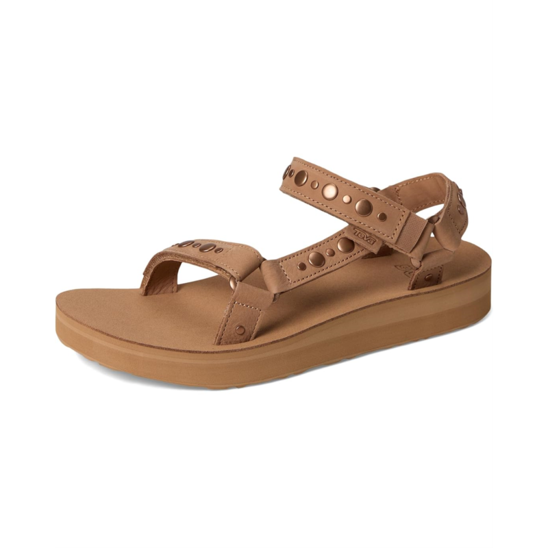 - Amp up your outfits and looks with the Teva Midform Universal Studded sandals. Cut from premium leather, their ultra-soft straps have been embellished with studs and paired with a cushy EVA footbed and 50% recycled roam-ready rubber outsole to tackle wherever the day takes you. These platform sandals are made of a 30% recycled lightweight EVA topsole and midsole for all-day wear. The nylon lining and EVA insole make them comfortable for all-day wear.