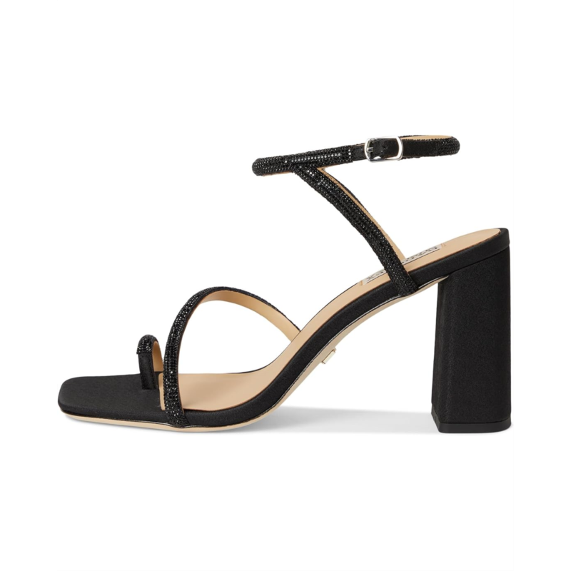 - Walk with style and confidence wearing the Badgley Mischka Dalilah heels. The silk upper is styled with a strappy design and an adjustable ankle strap. These heeled sandals are designed with a rubber insole and leather lining. Style up your looks and outfits with these chic sandals.