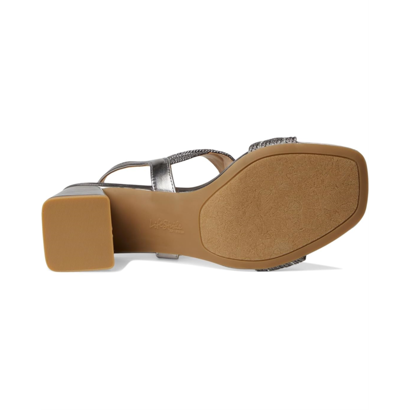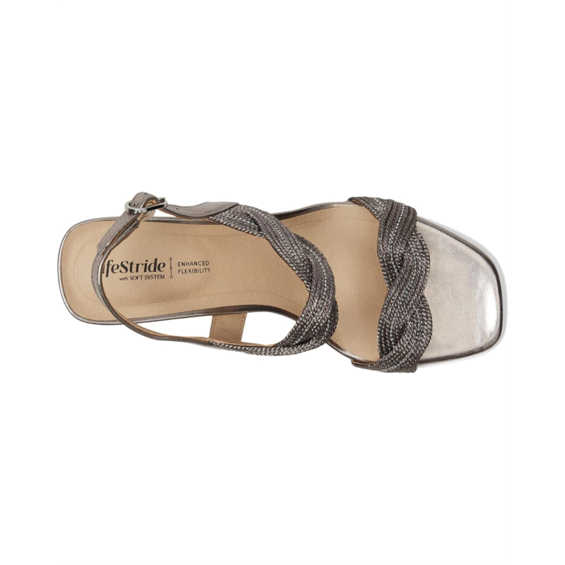 - Shine with every step in these stunning LifeStride Charnelle block heels featuring rhinestone accents. Crafted from faux leather upper, this square toe style boasts a slingback strap with an adjustable buckle for a perfect fit. These heels are designed with linings made from partially recycled materials. Experience unparalleled comfort with trusted Soft System technology, providing unmatched cushion, support, and flexibility in every pair. The ultra-flexible, padded platform heel offers enhanced flexibility for effortless movement.