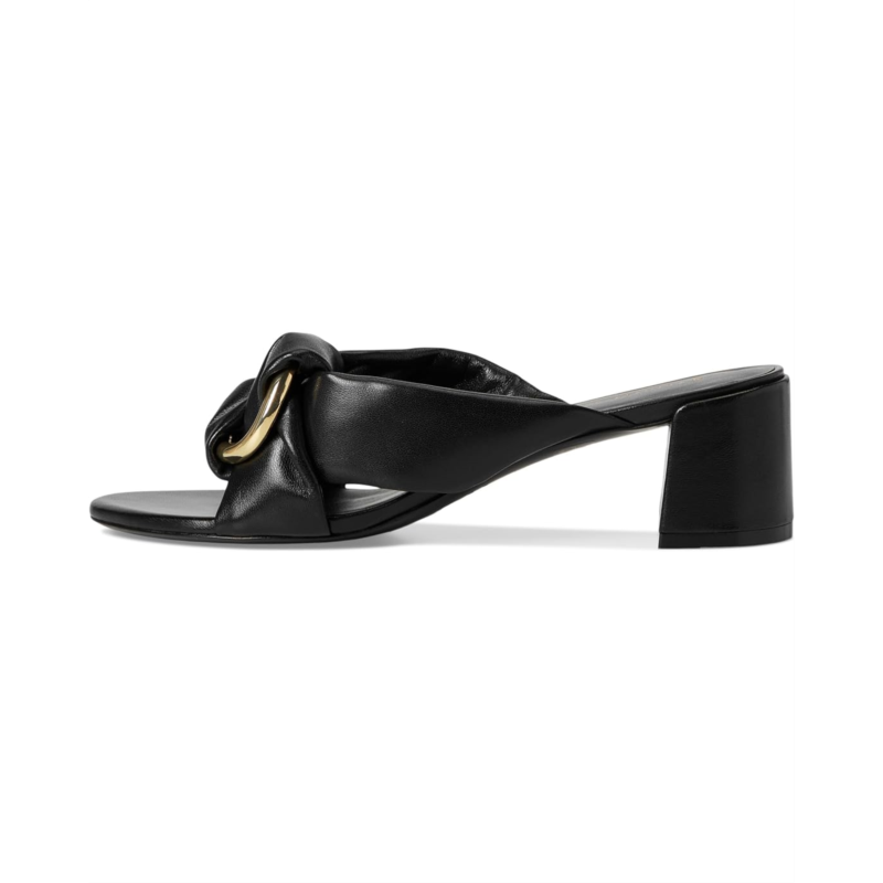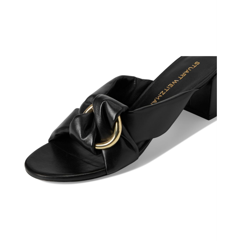 - Prepare to turn heads donning the Stuart Weitzman Cece Block Slides 50. The knotted leather upper and goldtone ring detail add a touch of sophistication to your look. Crafted from beautiful mestizo leather and lined with plush lamb leather, these slides offer both style and comfort. Complete with leather insole and block heels for added support, these slides are perfect for any occasion with their chic open toe design.