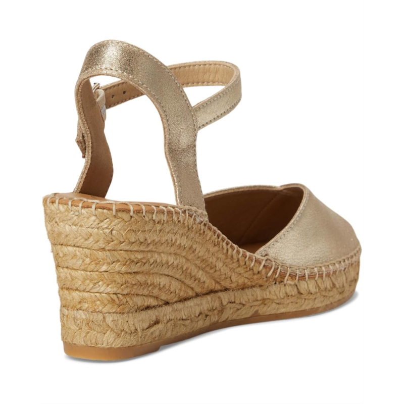 - Enhance your feminine side wearing the Toni Pons Bianca-As. Crafted from rubber upper, leather lining, and insole, this pair of sandals features round toe, wedge heel, jute midsole, ankle strap, buckle closure, and brand detailing on the footbed.