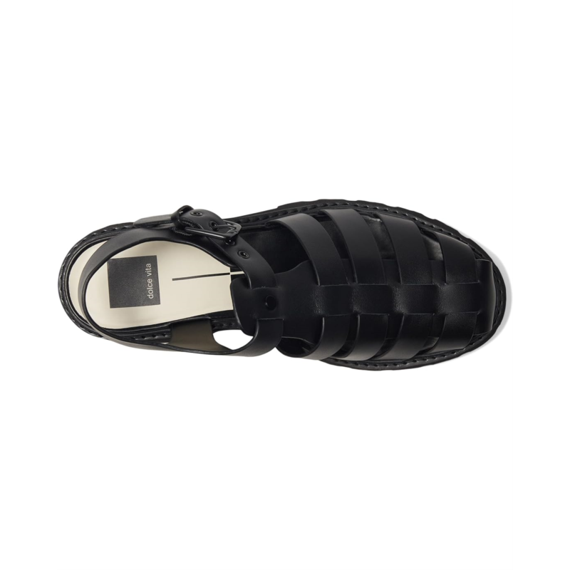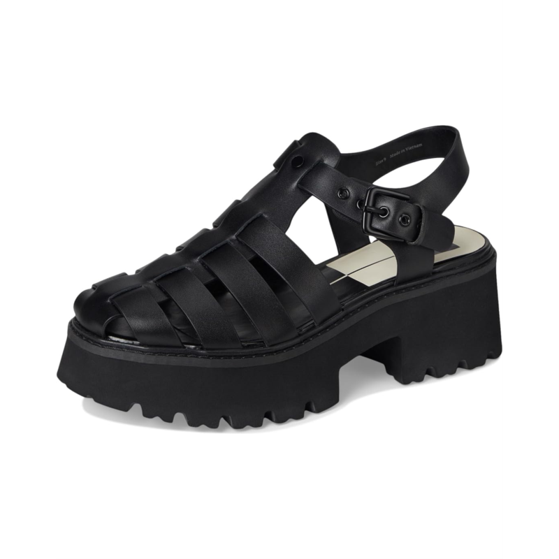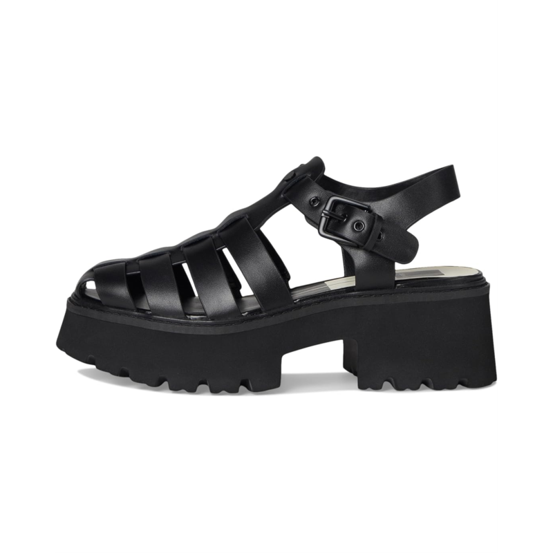 - Upgrade your footwear collection by wearing the Dolce Vita Lasly-398. The slip-on style sandals have a strappy cut-out silhouette, closed round-toe design, buckle closure, and block heels for a classy look. The sandals have raffia upper, DMFA-free synthetic lining, and DMFA-free synthetic polyurethane insole for added comfort.