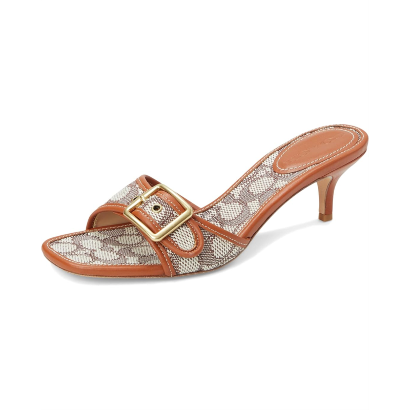 - COACH Margot Sandals: Confidence in every stride. Embrace sophistication with a signature twist. Crafted from signature textile jacquard and leather, these sandals blend luxury and comfort effortlessly. The jacquard footbed cradles your feet, while the man-made leather lining and outsole ensure durability and style. Designed with a chic kitten heel and slip-on convenience, the Margot Sandals are perfect for elevating casual ensembles or complementing evening wear.