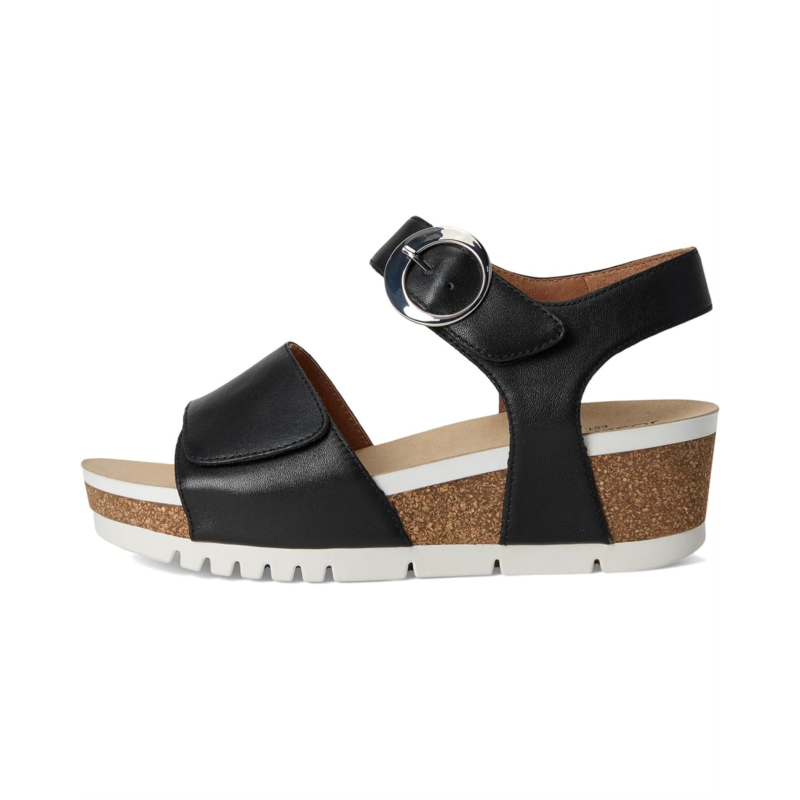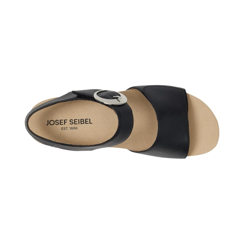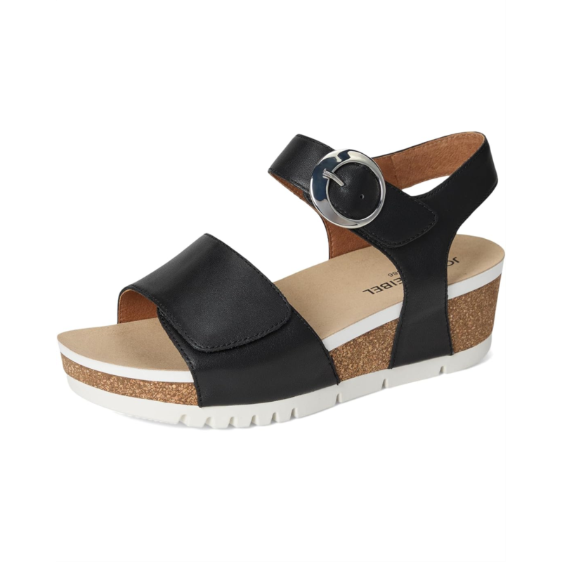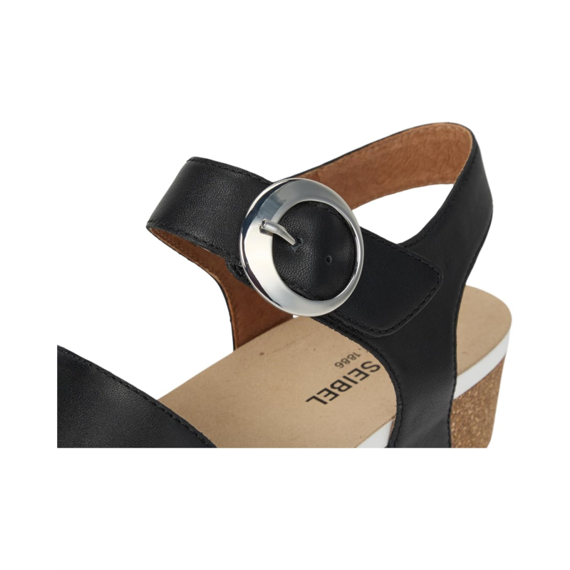 - Tread lightly with the Josef Seibel Quinn 16 sandals. With a leather lining, polyester insole, and padded & contoured footbed, these sandals feel comfy all day long. Their full-grain leather upper features two adjustable hook-and-loop straps for a proper fit. The Cork/latex composite midsole offers added comfort. These heeled sandals are designed with a flexible forefoot and rubber outsole.