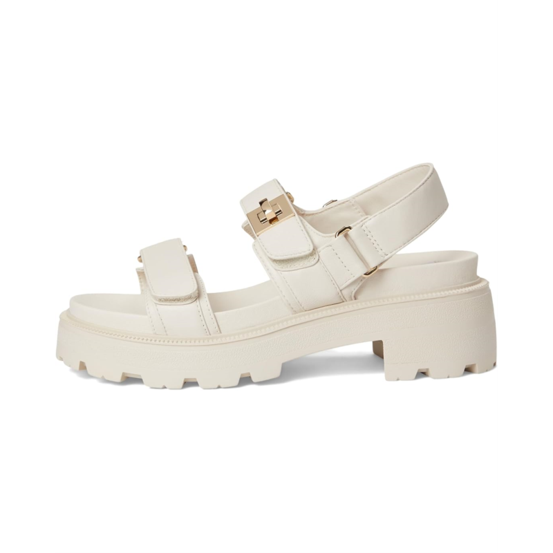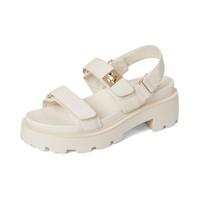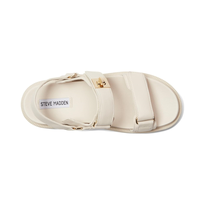 - Get all the style and traction you need for your casual explorations wearing Steve Madden Supermona Sandals. Designed with a leather upper, faux leather lining, and a faux leather insole, these ensure comfort with every step. The triple strap detail with hook-and-loop closures ensures a secure fit and the chunky block heel adds an elevated touch.