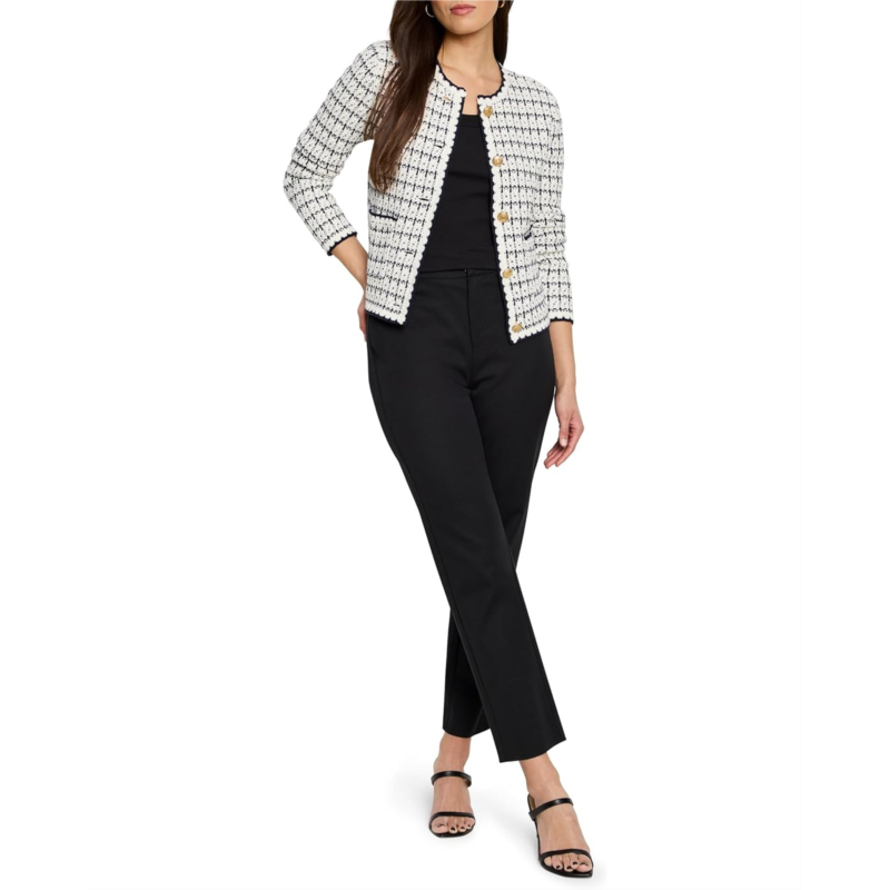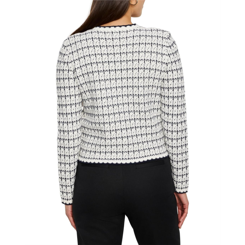 - Mixed Up and loving it, the versatile NIC+ZOE Mixed Up Sweater Jacket features a uniquely textured sweater knit stitch and charming novelty trims, offering a delightful blend of classic and contemporary style. The midweight fabric ensures a comfortable feel, perfect for layering throughout the seasons. Designed with a regular fit and a round neck, this cardigan provides a flattering silhouette that sits gracefully at the hip. The long, basic sleeves and button front closure add to its timeless appeal, while the practical patch pockets offer both style and functionality.