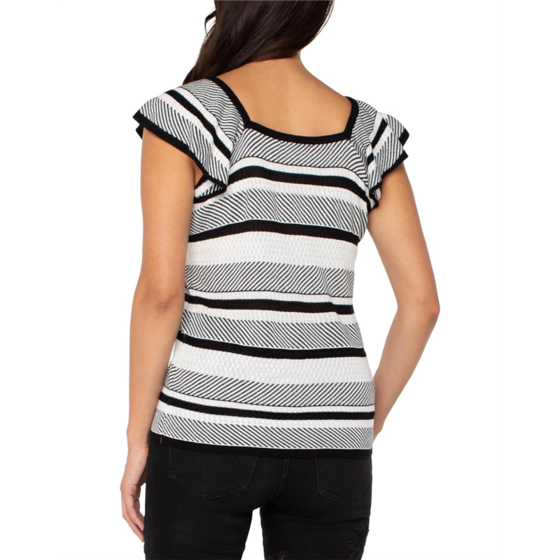 - Elevate your everyday style with the Liverpool Los Angeles Ruffle Sleeve Square Neck Sweater Top, designed with stylish stripes and ruffle sleeves that add a touch of elegance to any outfit.