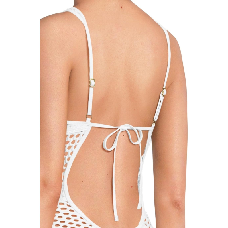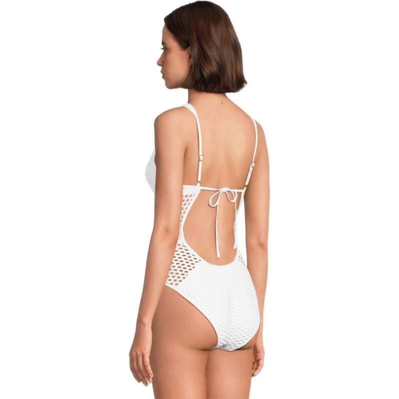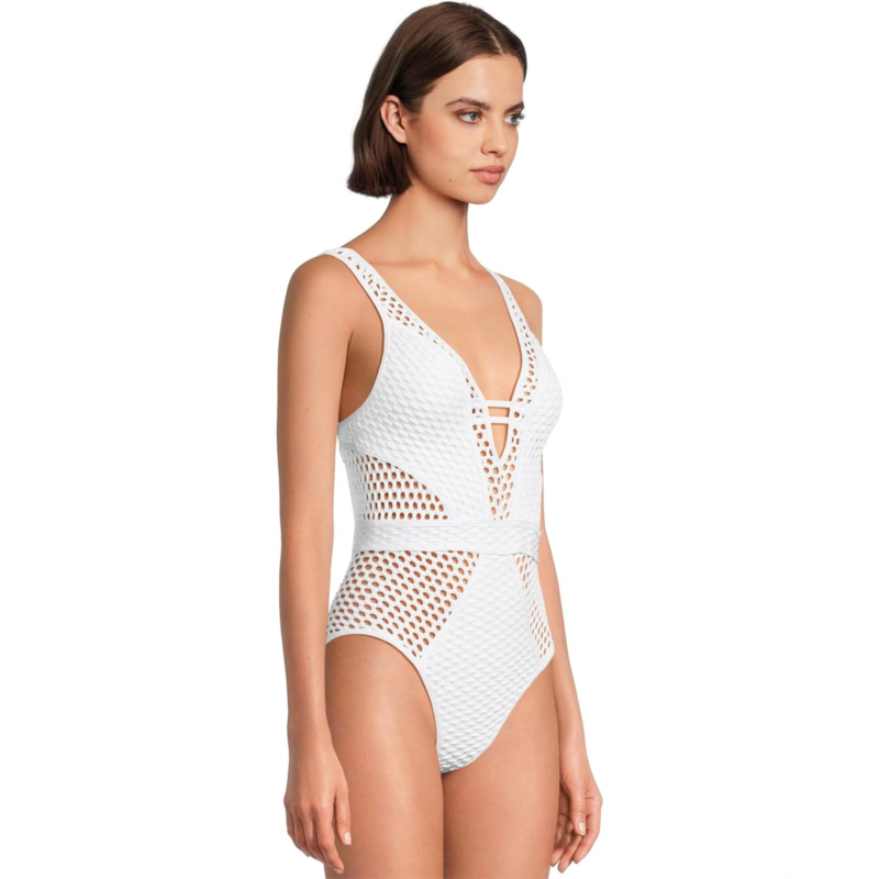 [US] Womens BECCA Castaway Fishnet Texture Plunge One Piece