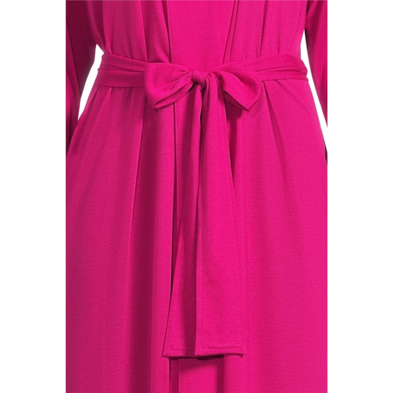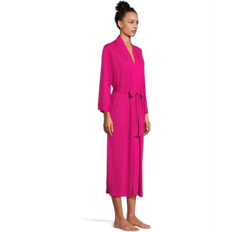 - Bracelet-sleeve robe is fabricated from a solid poly-rayon jersey knit.