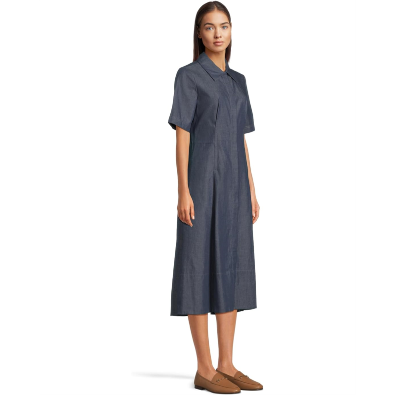 - Amaze everyone with your sleek and stylish aesthetic by donning the Vince Denim Short Sleeve Shirt Dress. The full-pleated A-line dress features a collared neck, short sleeves, a hidden-button placket, two hand pockets, and a midi-length silhouette.