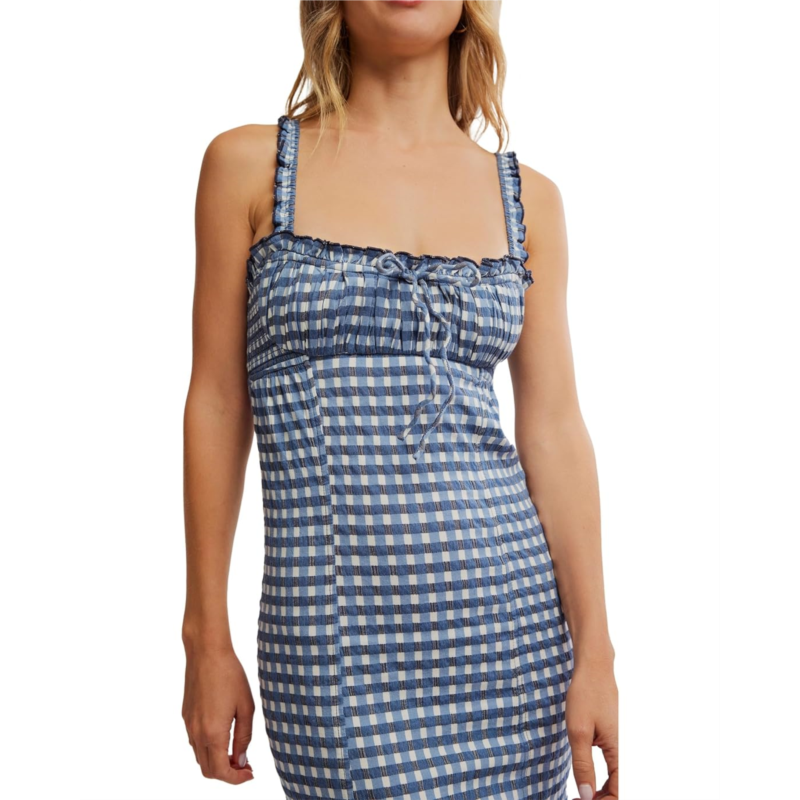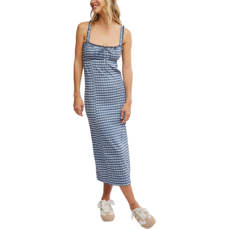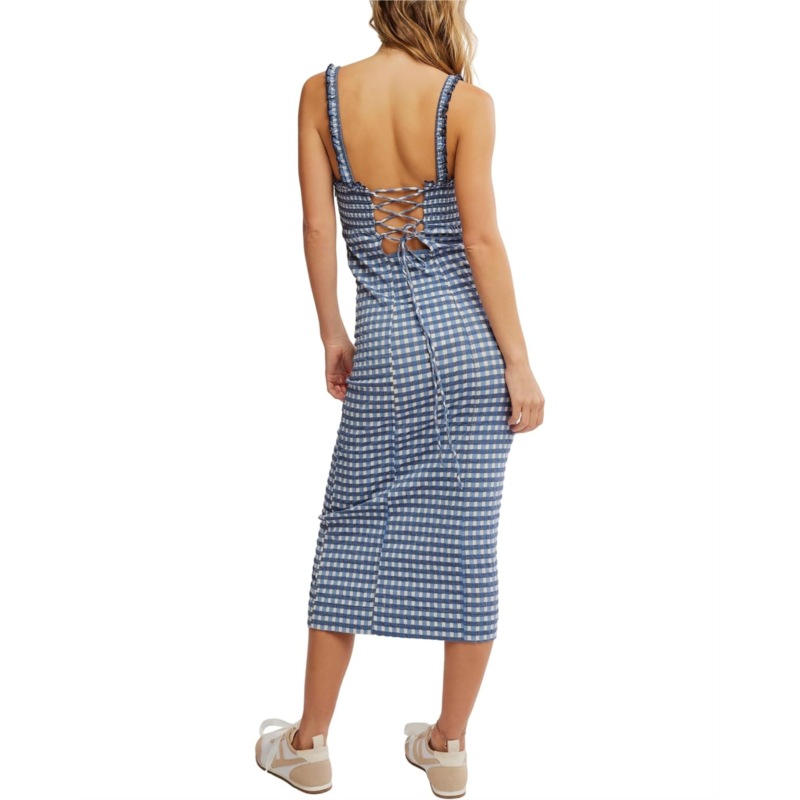 - Slay the night, and own the spotlight wearing the Free People Lucinda Midi. This solid pattern dress features classic, fitted silhouette, square neckline, keyhole detail at the chest, lace-up back details, and allover checkered print.
