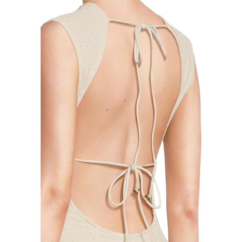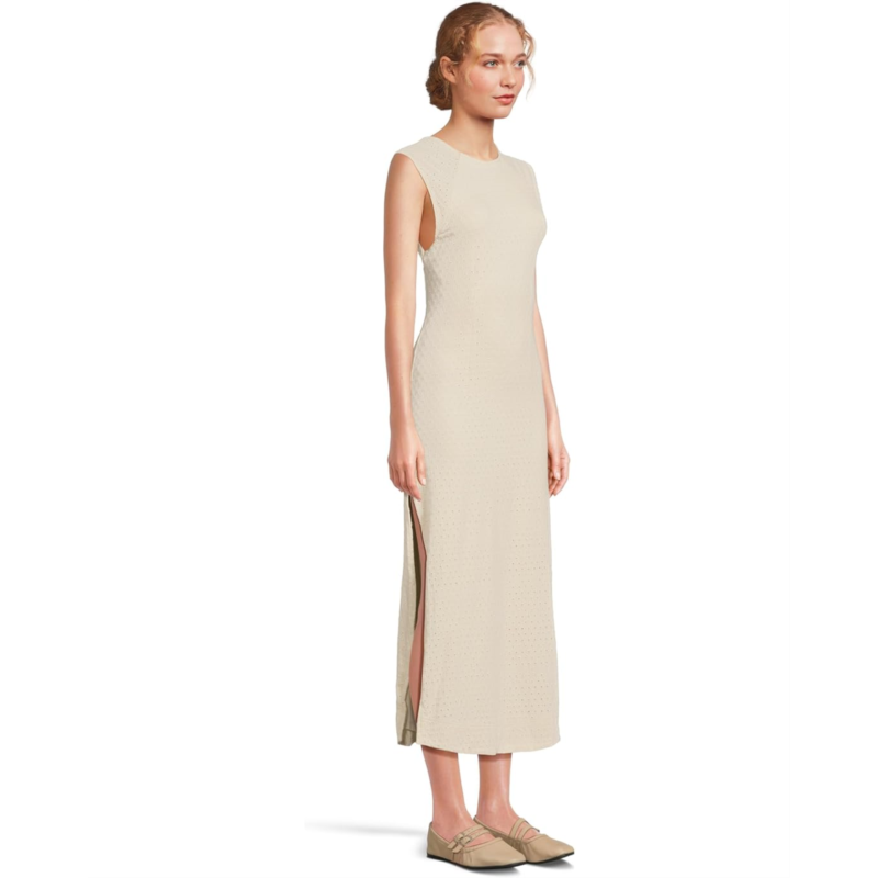 - Get ready to turn heads wearing the Free People Eventide Midi dress! Made with a midweight knit textile, this dress features a crew neckline, sleeveless style, zippered side closure, and self-ties on the neck and back. The eyelet cut-out detail adds a touch of elegance, while the open back and side slit give it a stylish twist. Why We ♥ It: Perfect for brunch, special occasions, and more.