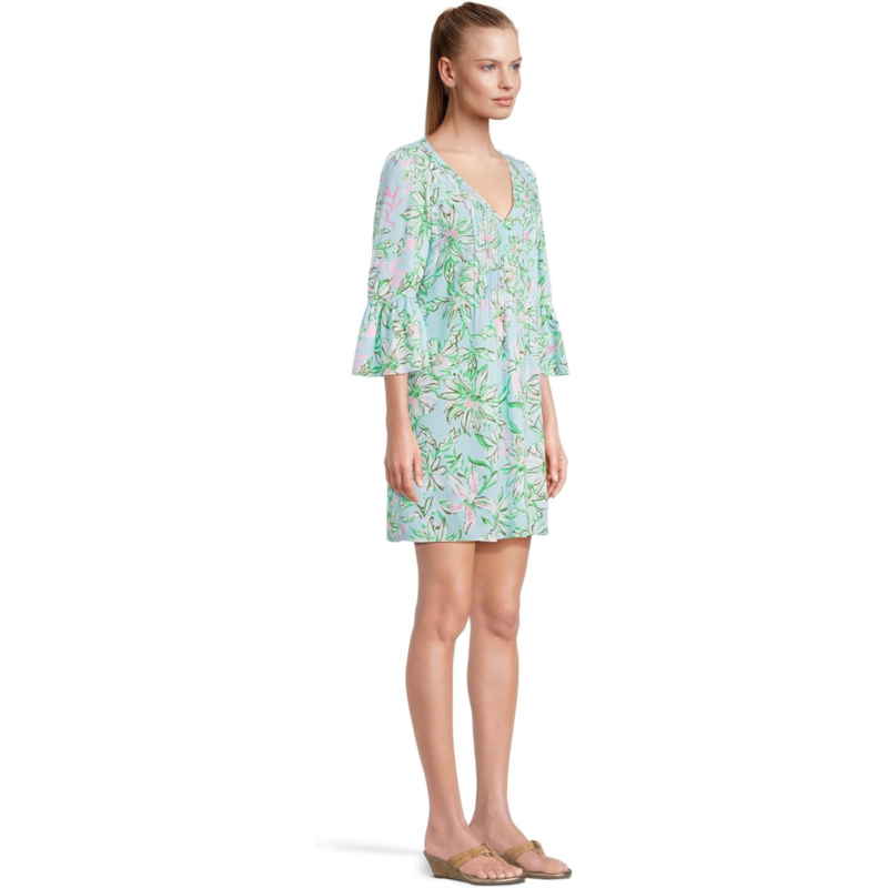 - Effortless elegance awaits when you put on the Lilly Pulitzer Danika 3/4 Sleeve Tunic Dress. This dress skims your curves for a polished, put-together look. This easy fit dress features a flattering V-neckline with charming pintuck details, three-quarter-length sleeves for a touch of coverage, and a playful ruffle hem.