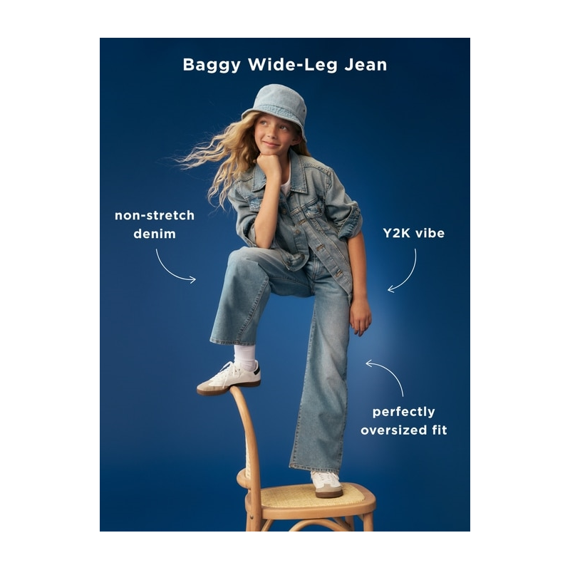 [US] OldNavy High-Waisted Baggy Ripped Wide-Leg Jeans for Girls