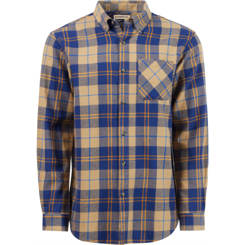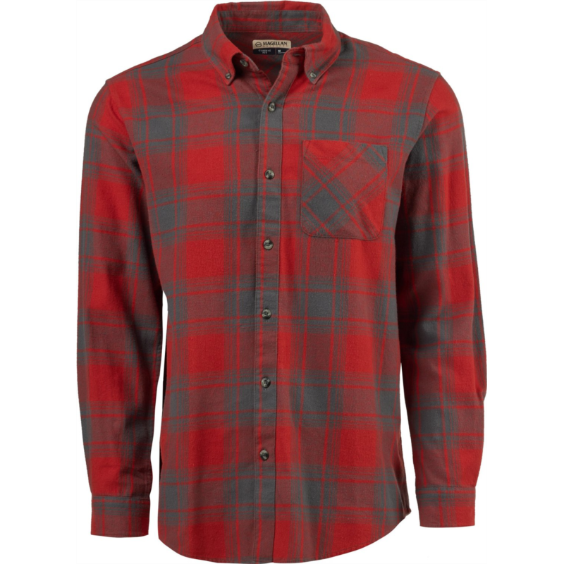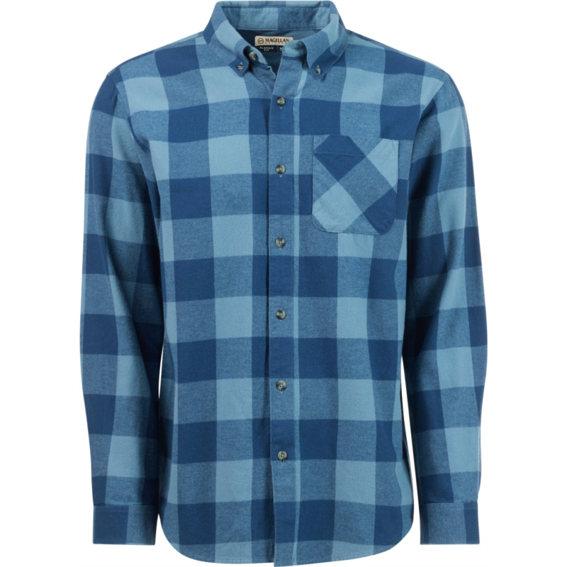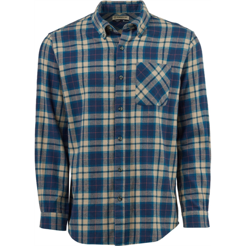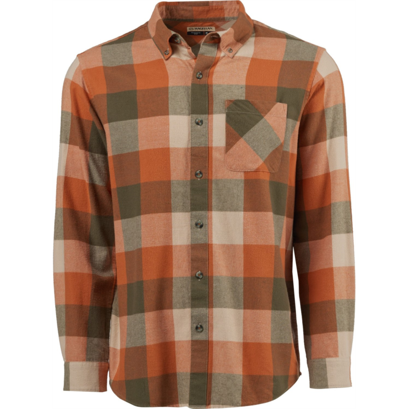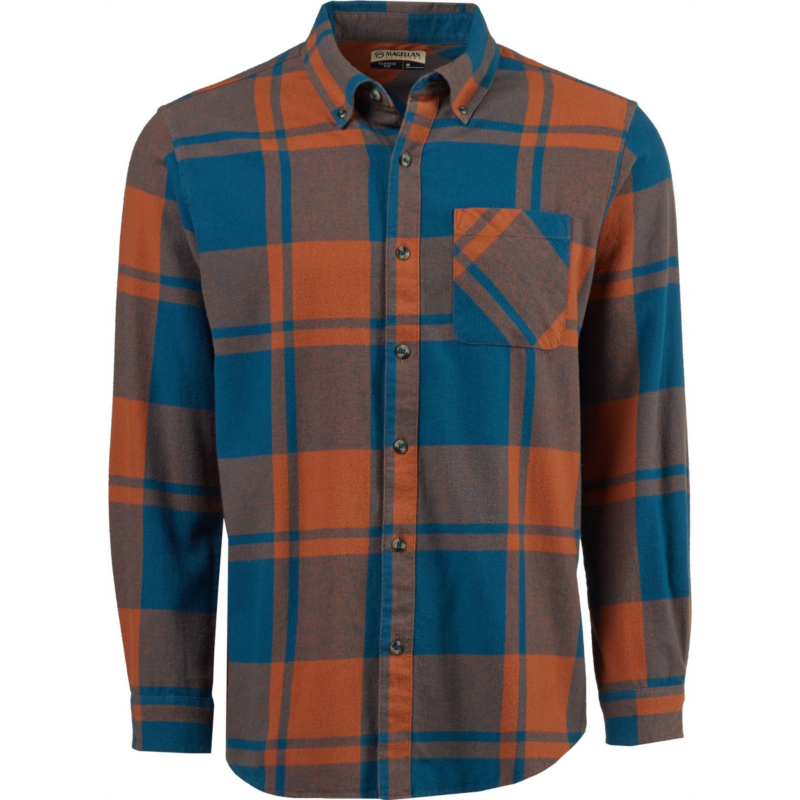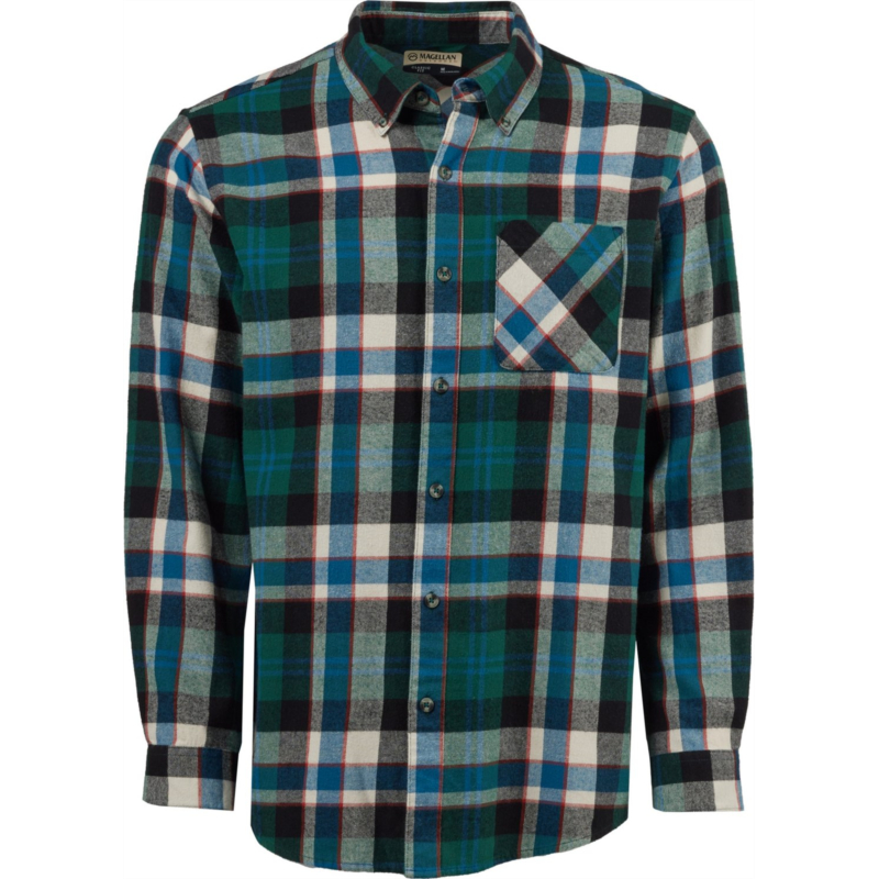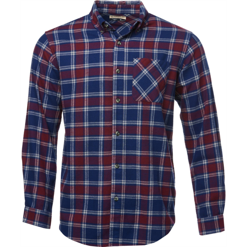 Wear the Magellan Outdoors Canyon Creek Long Sleeve Flannel Shirt on your next hike for all-day comfort. Made from 100% brushed woven cotton fabric, this plaid shirt sports a pocket and a full button-down front closure. Classic Fit