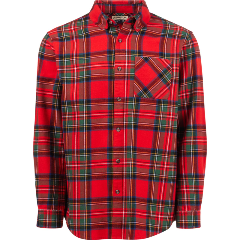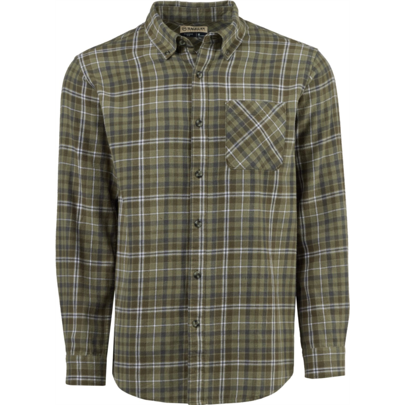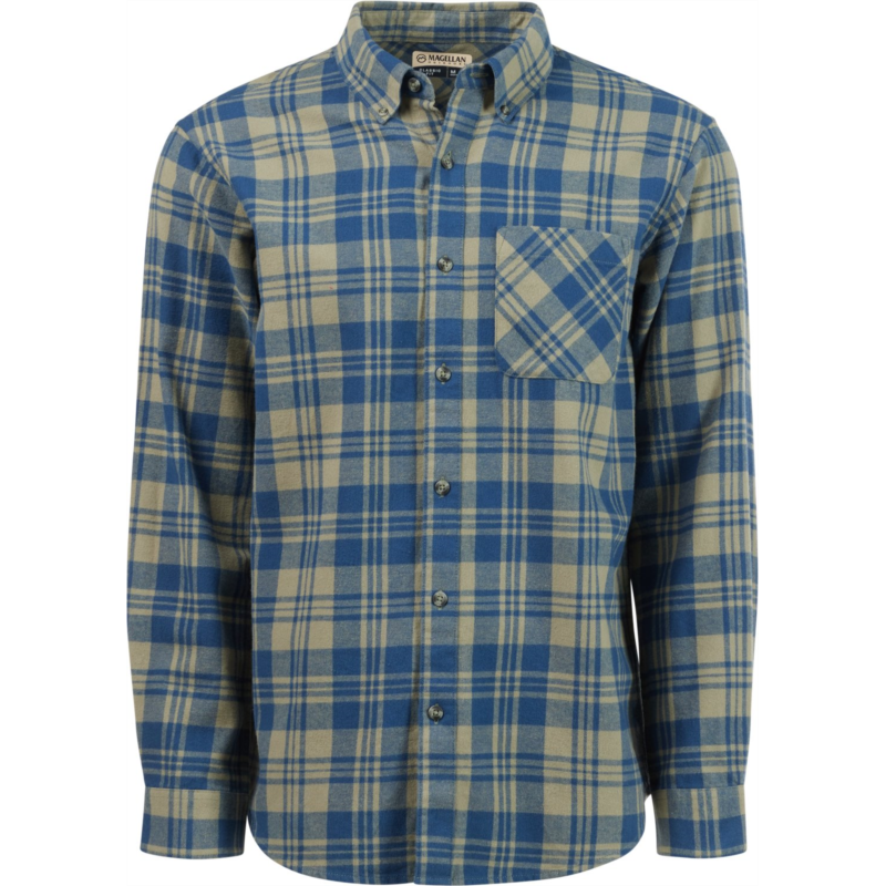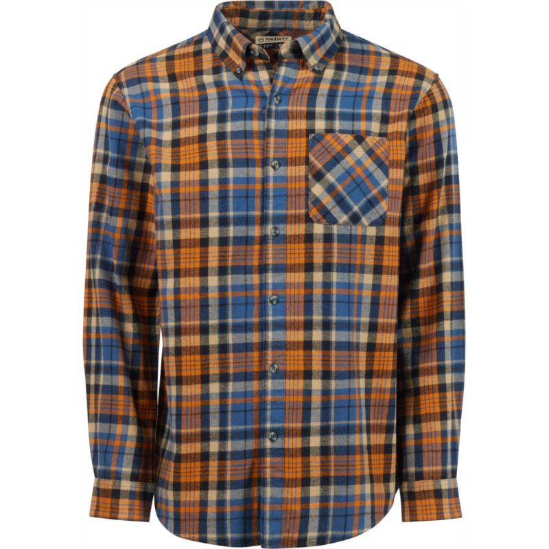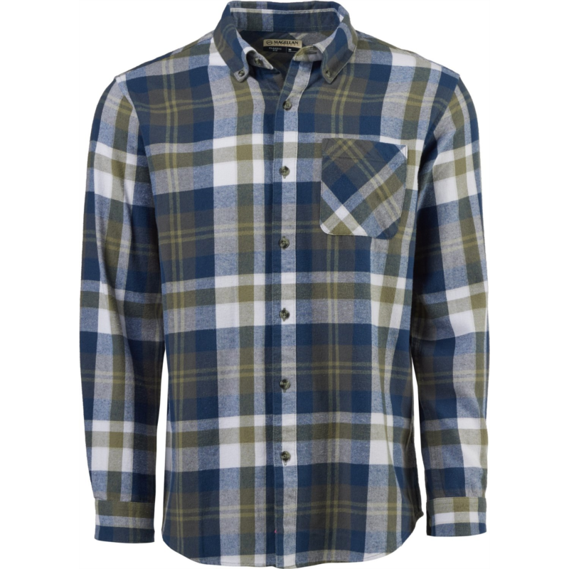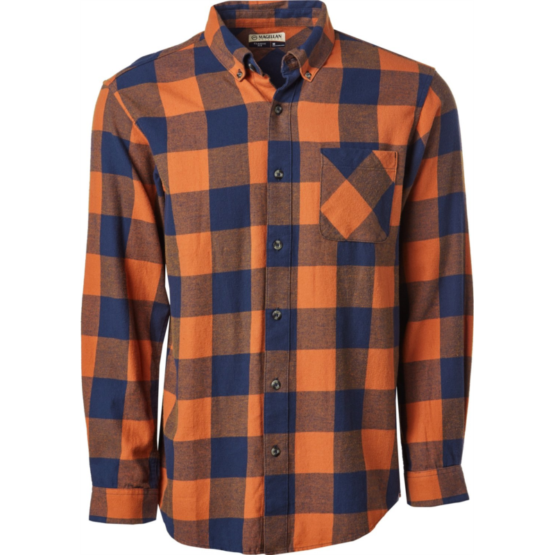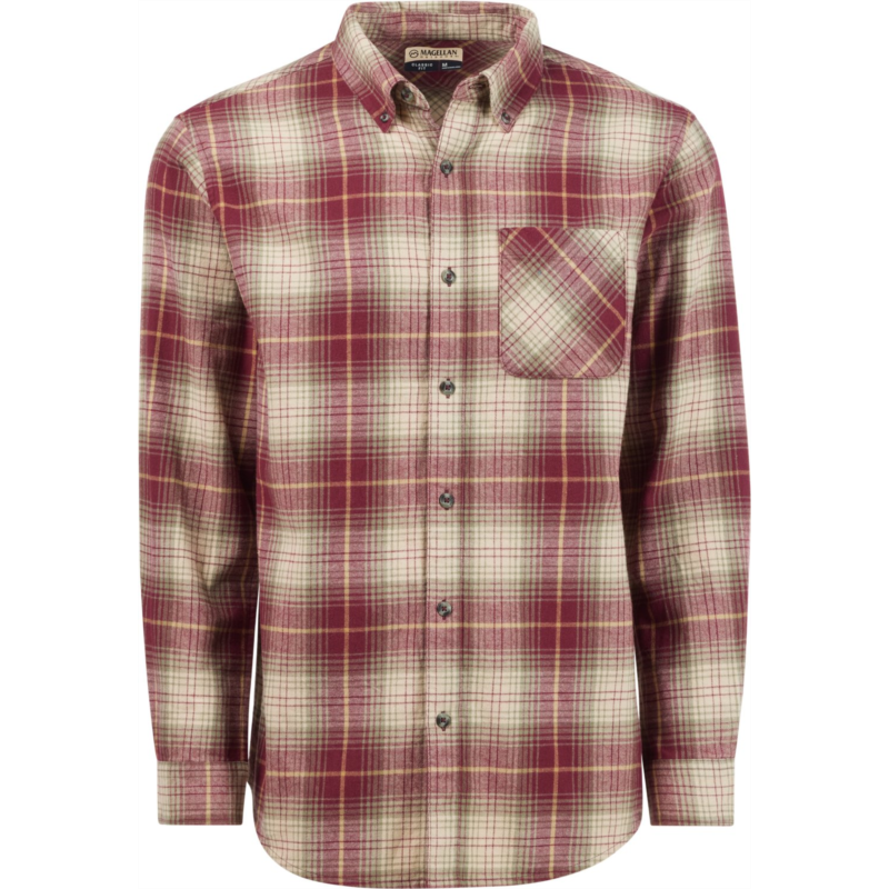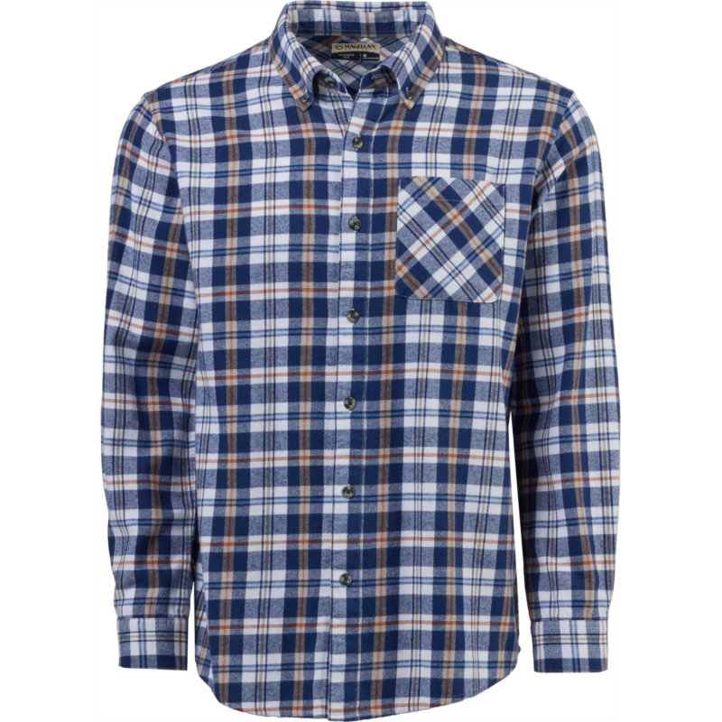 Wear the Magellan Outdoors Canyon Creek Long Sleeve Flannel Shirt on your next hike for all-day comfort. Made from 100% brushed woven cotton fabric, this plaid shirt sports a pocket and a full button-down front closure. Classic Fit