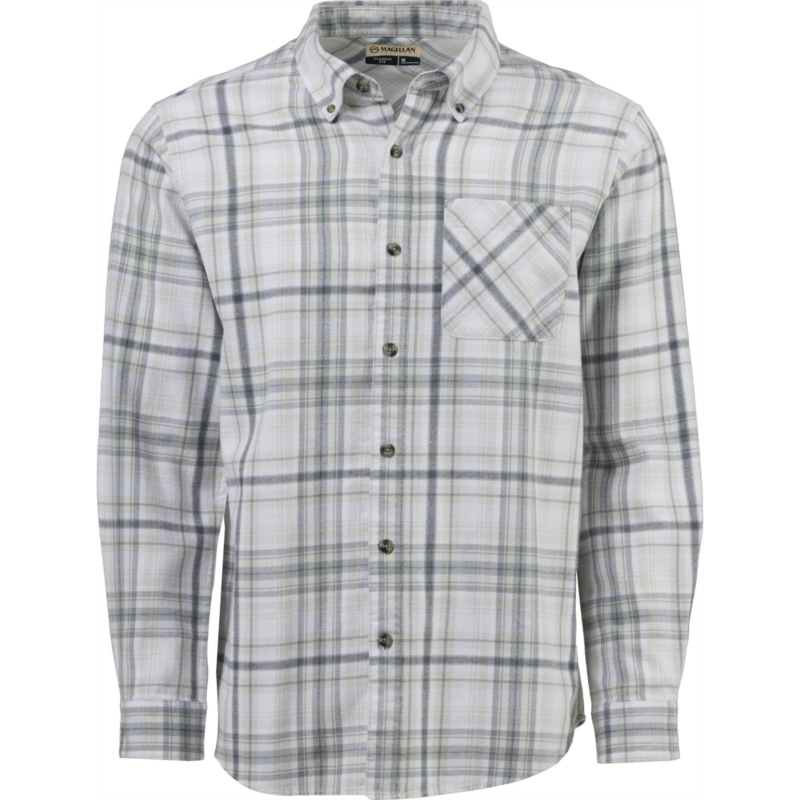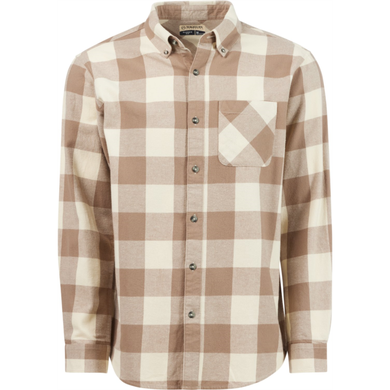 Magellan Outdoors Canyon Creek Long Sleeve Flannel Shirt Oyster White/Walnut Buffalo