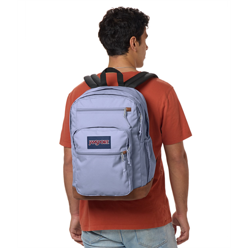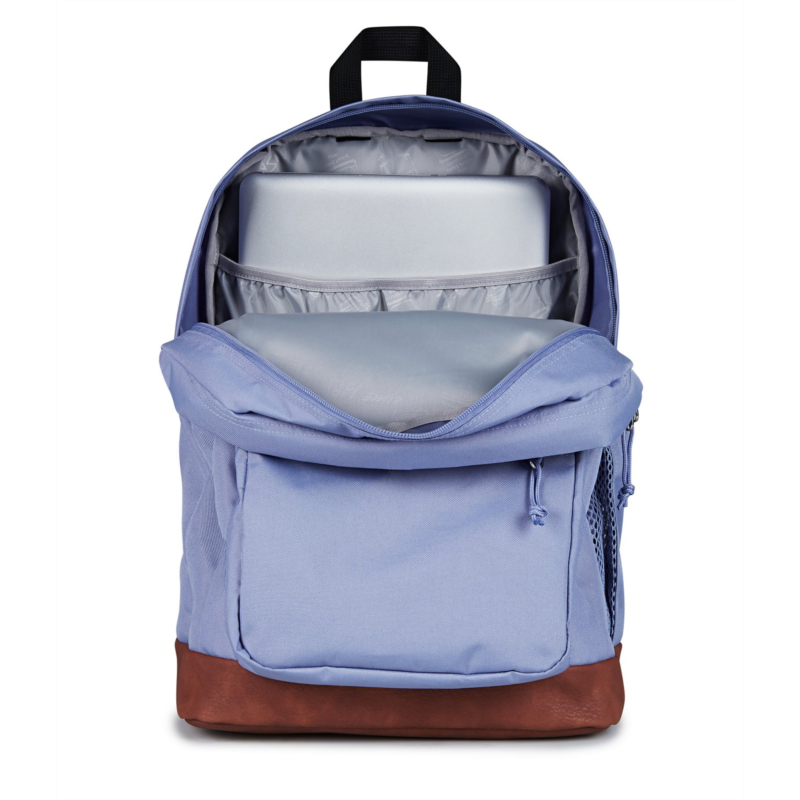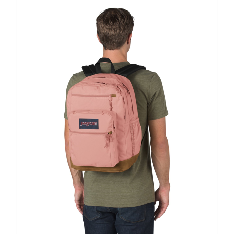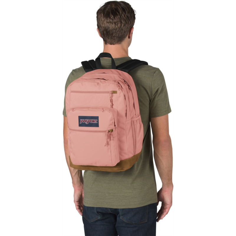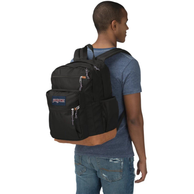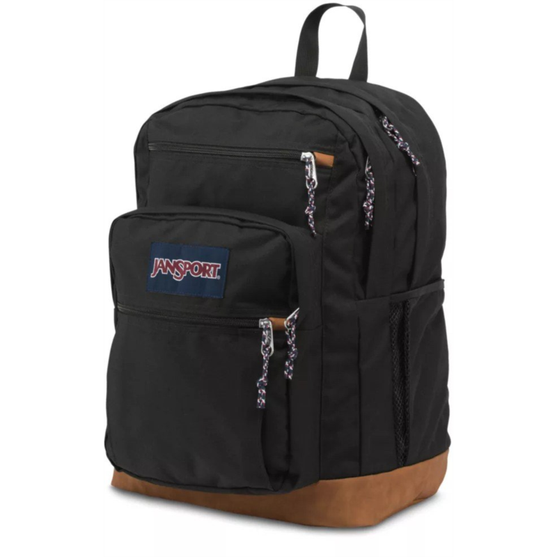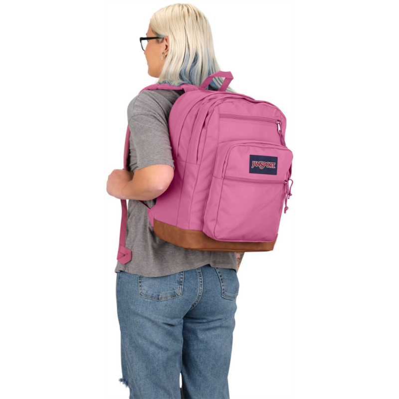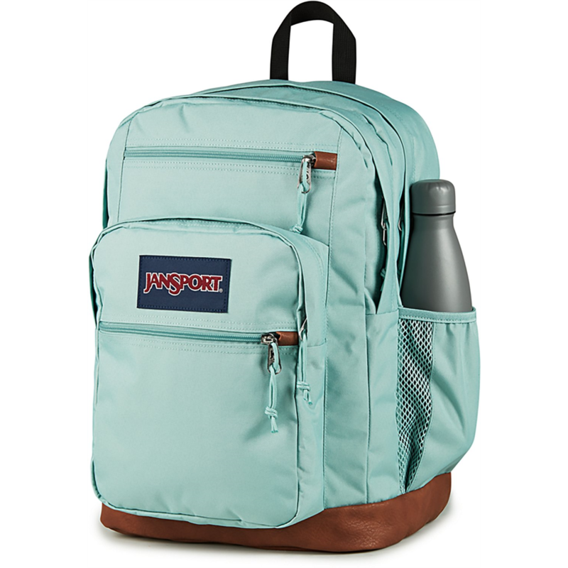 Keep everything you need for class in the JanSport Cool Student Backpack. Dual main compartments, a laptop sleeve, a stash pocket and a water bottle pocket help keep your belongings organized, while the ergonomic shoulder straps and padded back panel provide comfort. Made with a synthetic leather base and trim