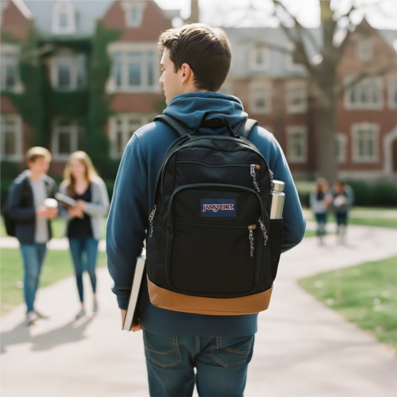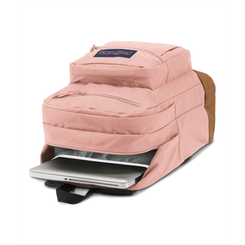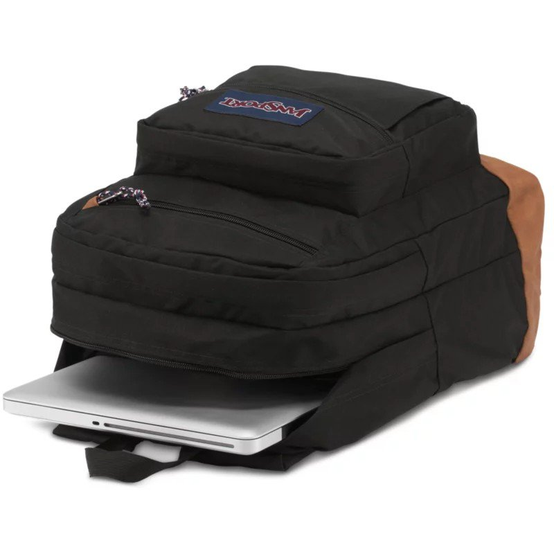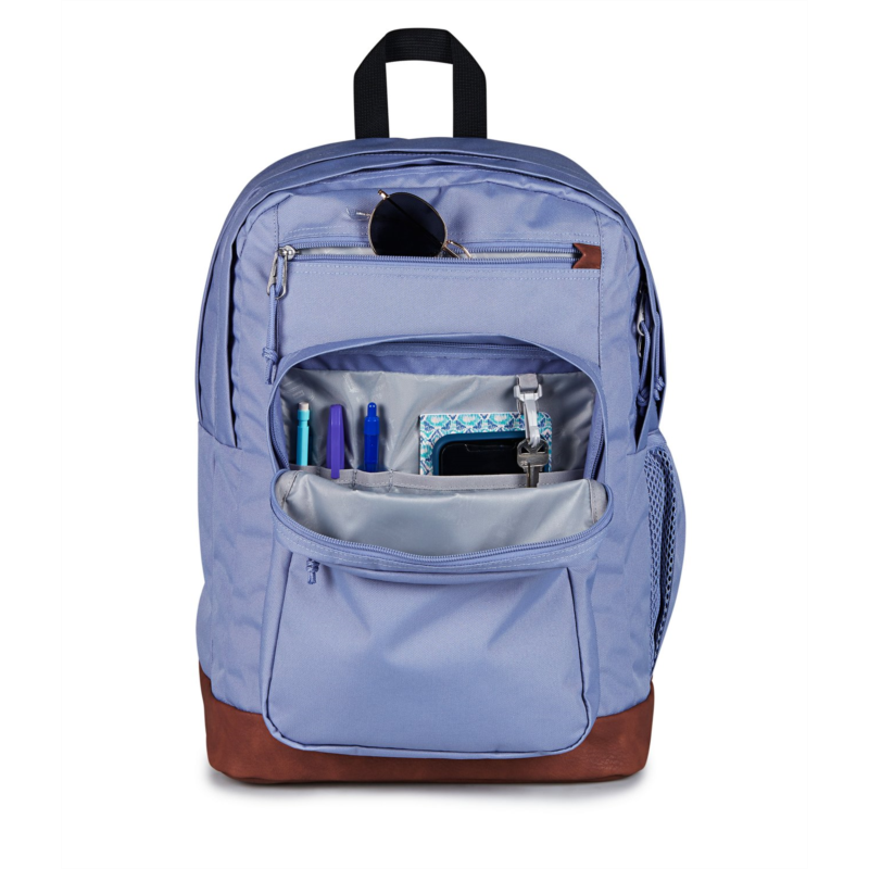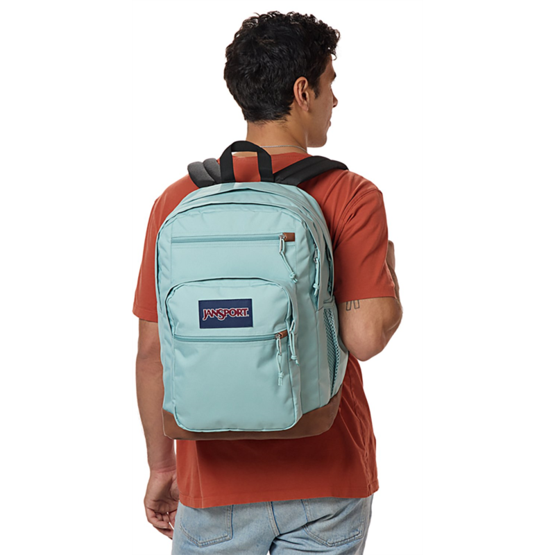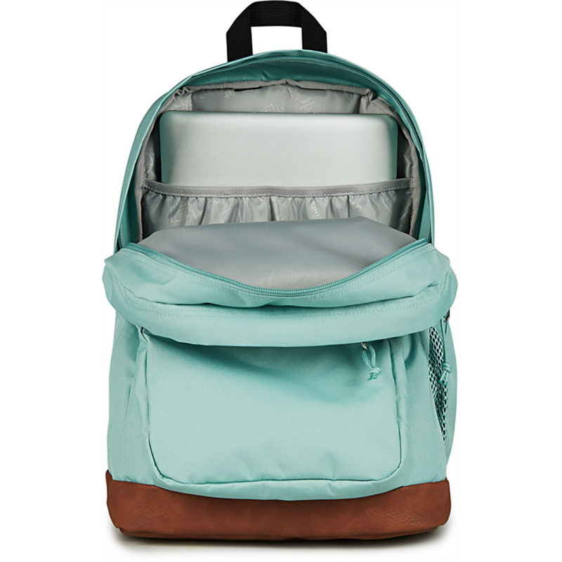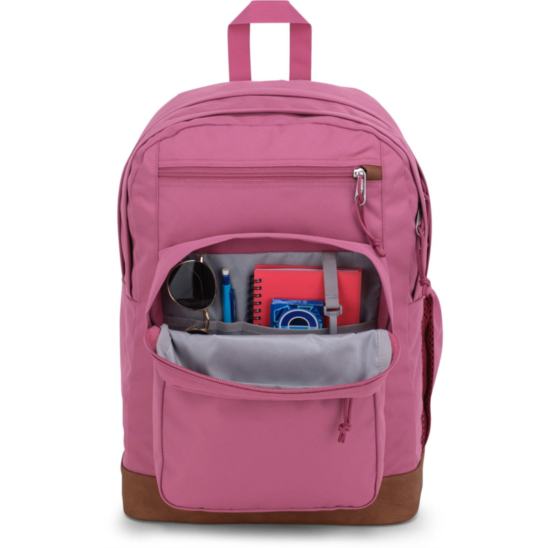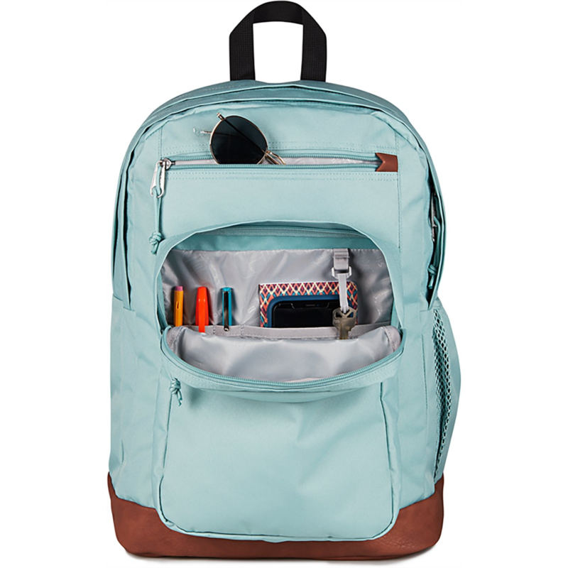 Keep everything you need for class in the JanSport Cool Student Backpack. Dual main compartments, a laptop sleeve, a stash pocket and a water bottle pocket help keep your belongings organized, while the ergonomic shoulder straps and padded back panel provide comfort. Made with a synthetic leather base and trim