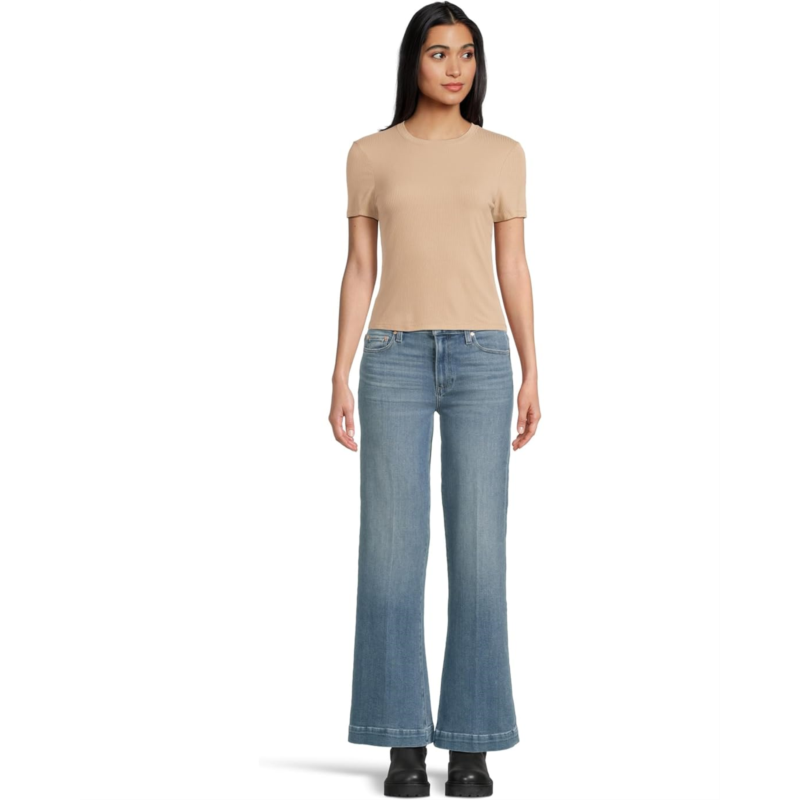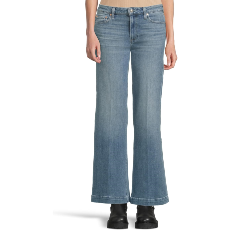 - The Paige Leenah 32'' in Mana jeans are 90s-inspired, sleek, wide-leg jeans that are a great choice to style up your everyday casual looks. These denim jeans are made from a cotton-blend fabric that offers superior comfort and stretchability. They are finished with a zip-fly, buttoned closure, and belt loops.