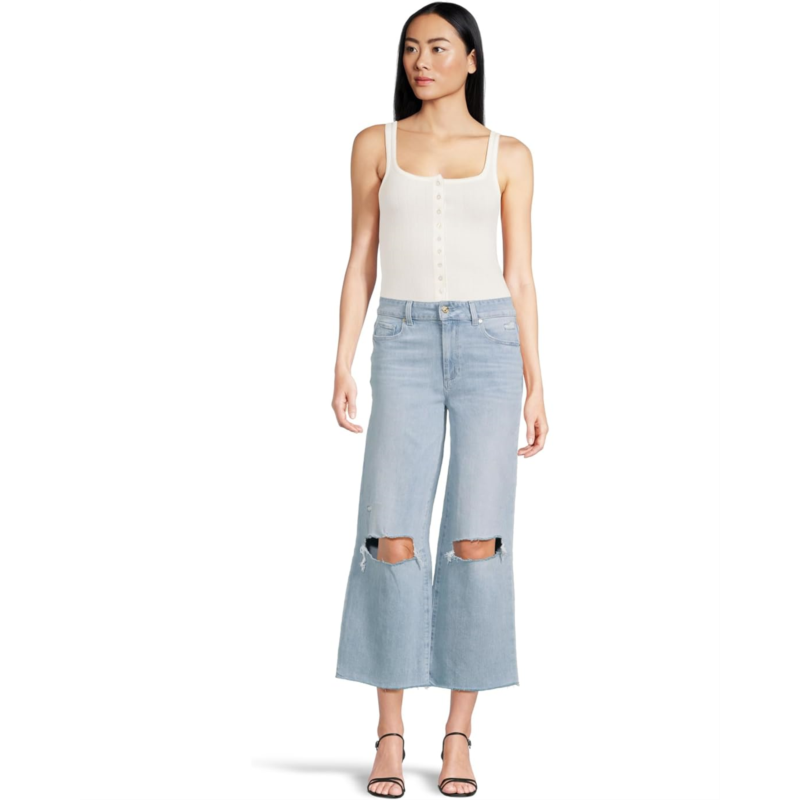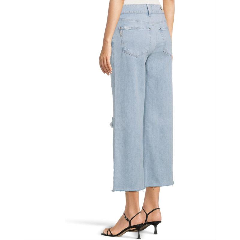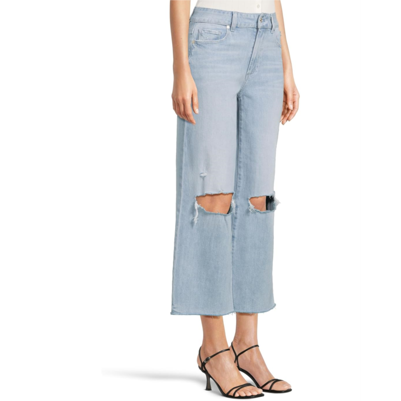 - Get ready to elevate your denim game choosing the Paige Sasha Ankle Raw Hem in Maeve Destructed. Featuring a high-rise waist and wide-leg style, these jeans are designed to flatter your curves while keeping you on-trend. The fitted top block provides a sleek silhouette, while the slightly relaxed fit offers all-day comfort. This pair is cut from our PAIGE VINTAGE denim in a light wash with lived-in details, destruction at both knees, a raw hem, and an ankle-length inseam. With belt loops, a zip-fly, and button closures, these jeans are as functional as they are fashionable.