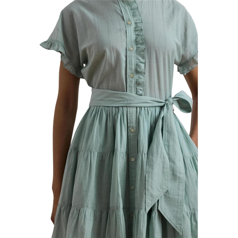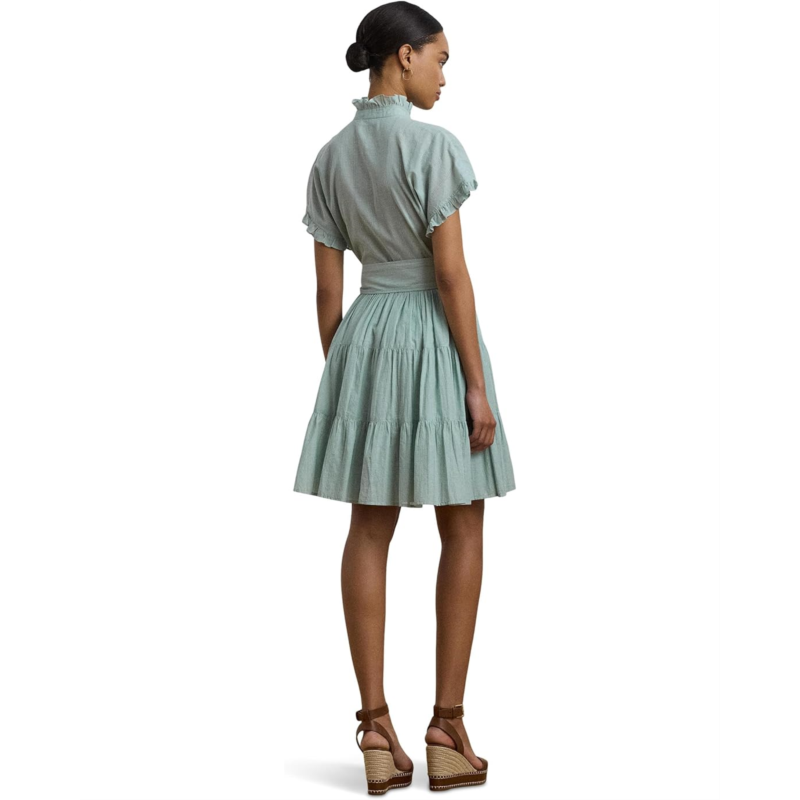 - Embodying the elegance of Lauren Ralph Lauren, this lightweight Striped Ruffle Trim Voile Shirtdress is enhanced with feminine design elements, including ruffle trim and a tiered skirt. A self-belt at the waist accentuates its fit-and-flare silhouette, while slender yarn-dyed stripes recall timeless shirting styles. The dress features a ruffled band collar, short sleeves with ruffle-trimmed cuffs, and shirring into the tier seams.