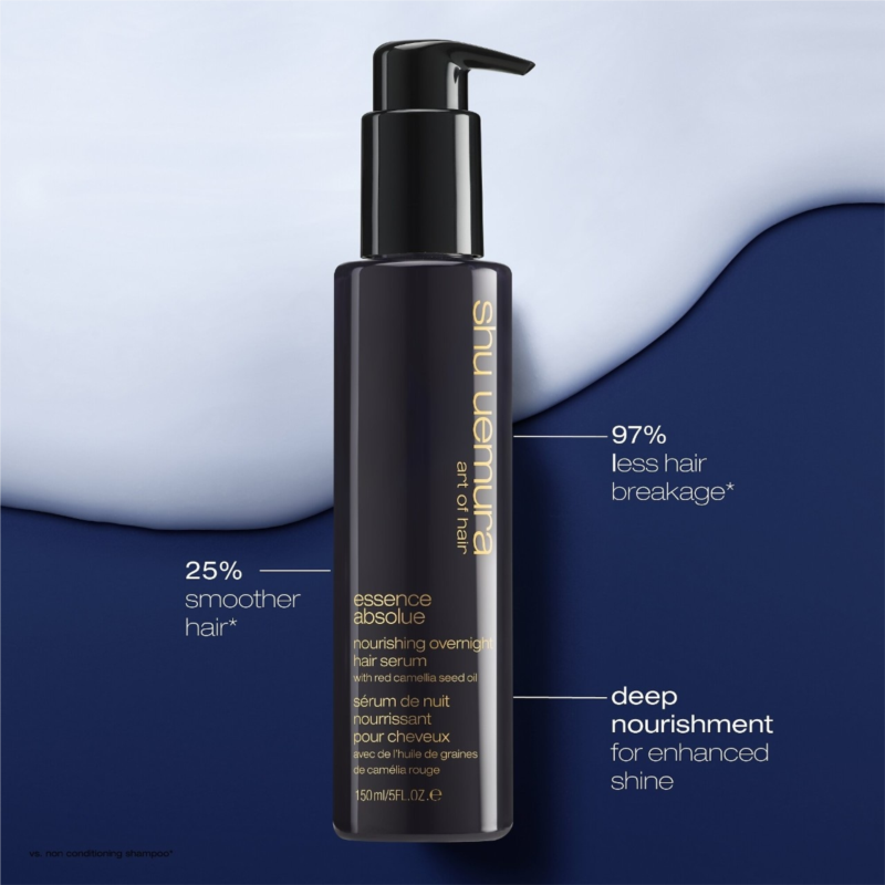 Clinical Results: In a controlled study using Essence Absolue Nourishing Overnight Hair Serum, results showed versus non-conditioning shampoo: