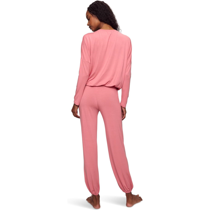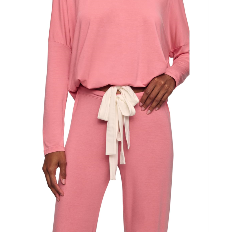- Stay cozy and effortlessly stylish in this Eberjey Gisele Slouchy Set. The long-sleeve top features a scooped boat neckline, slim long sleeves, and roomy drop shoulders, offering a relaxed yet chic silhouette. The accompanying low-rise slouchy pants come with an elasticized ankle hem, adding to the laid-back feel. With an adjustable sash on both the top and pants, you can achieve the perfect custom fit for ultimate relaxation.