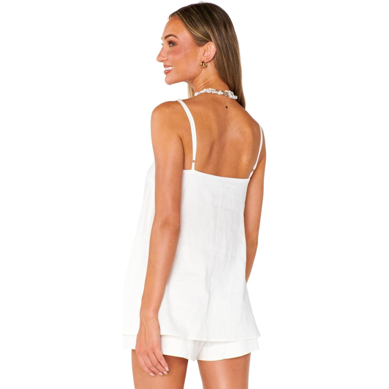 - Simple and chic, the Show Me Your Mumu Abby Top screams subtle luxury! Thin cami straps, squared neck, built-in shelf bra liner, and extra long length set this pull-on style top apart from the rest. Pair back with a matching white linen trouser for a chic look.