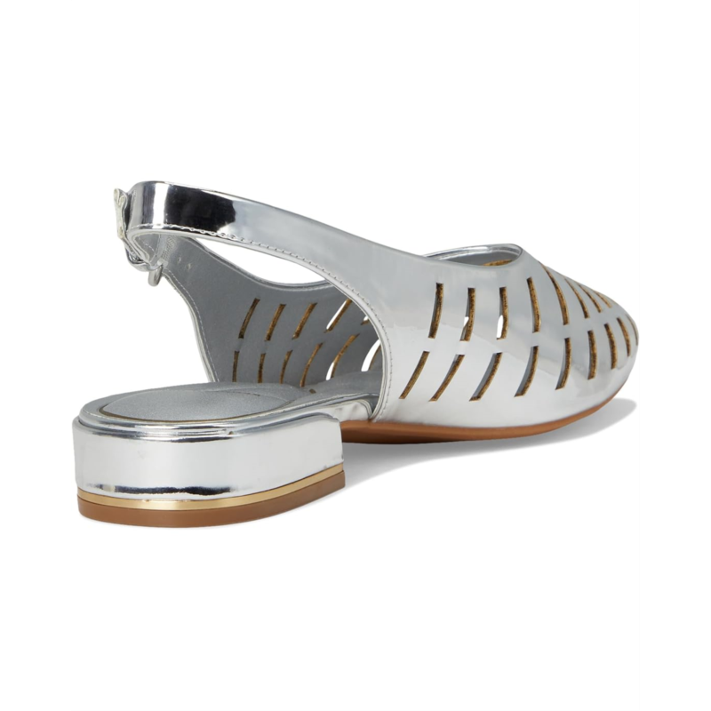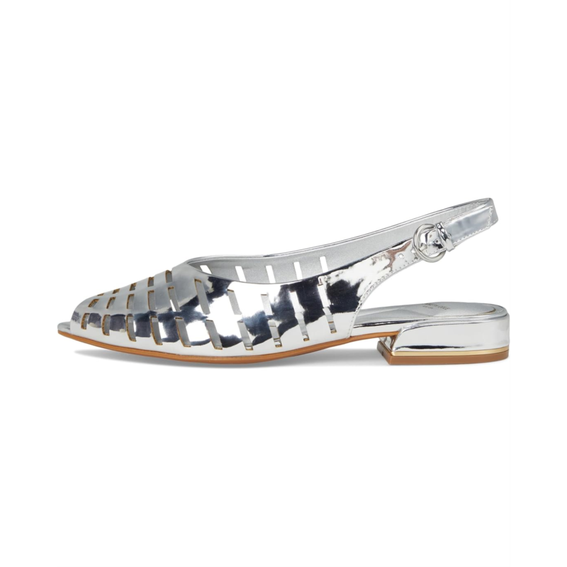 - Kenneth Cole New York Calabra is perfect from day trips to romantic evening strolls. Crafted from leather upper, and synthetic lining, this pair of sandals features a pointy peep toe and geometric perforations create a futuristic aesthetic on a metallic slingback flat set on a cushioned footbed and barely-there block heel.