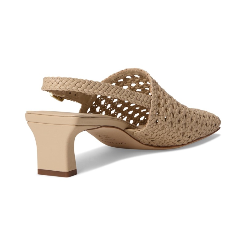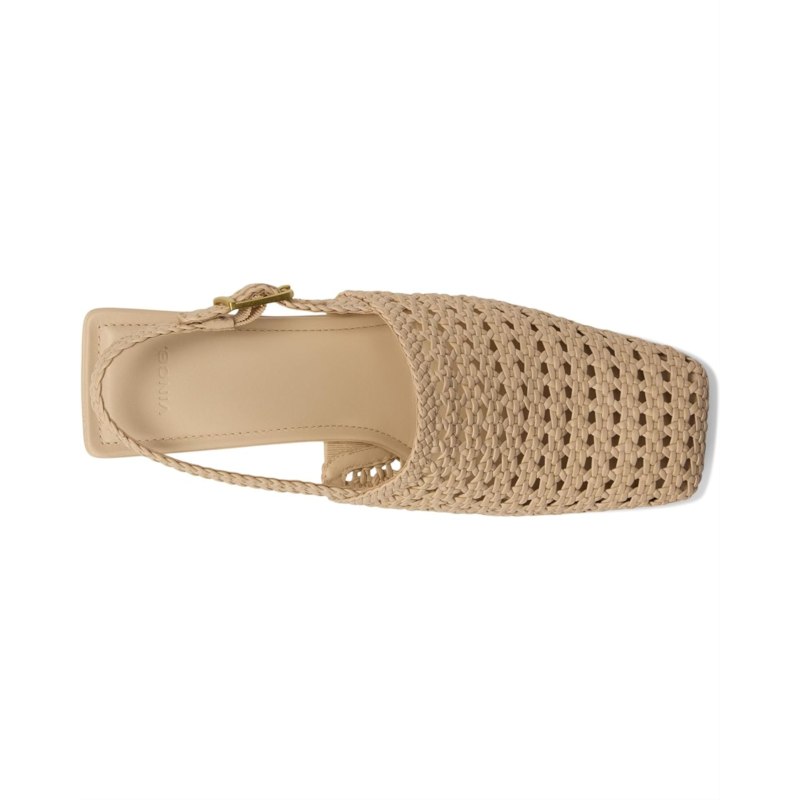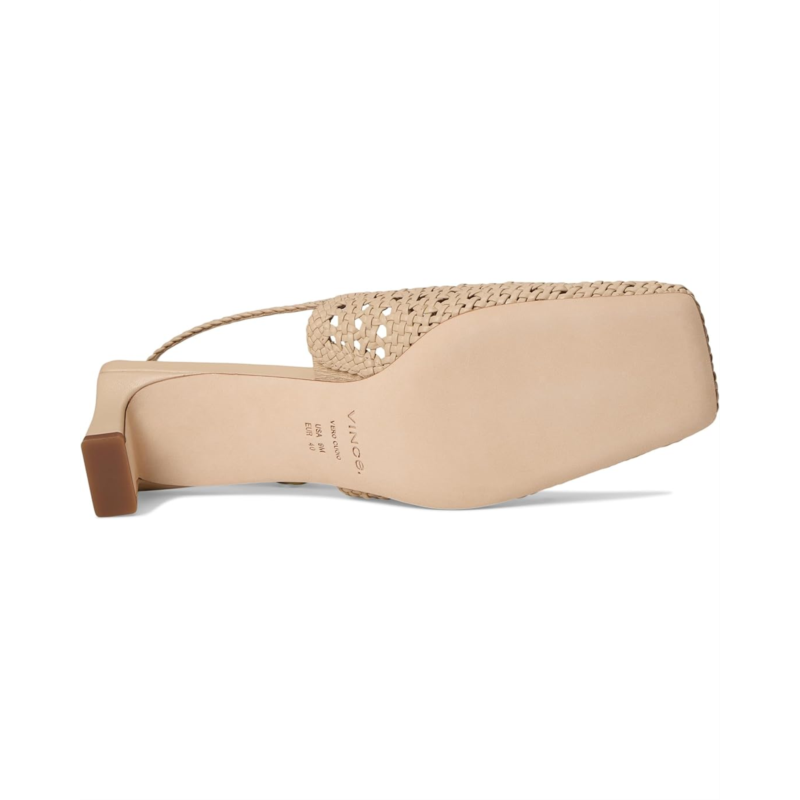 - Crafted from textural woven leather, the Vince Eris is a modern update to the classic slingback. The pair is finished with a bold square toe and architectural kitten heel.