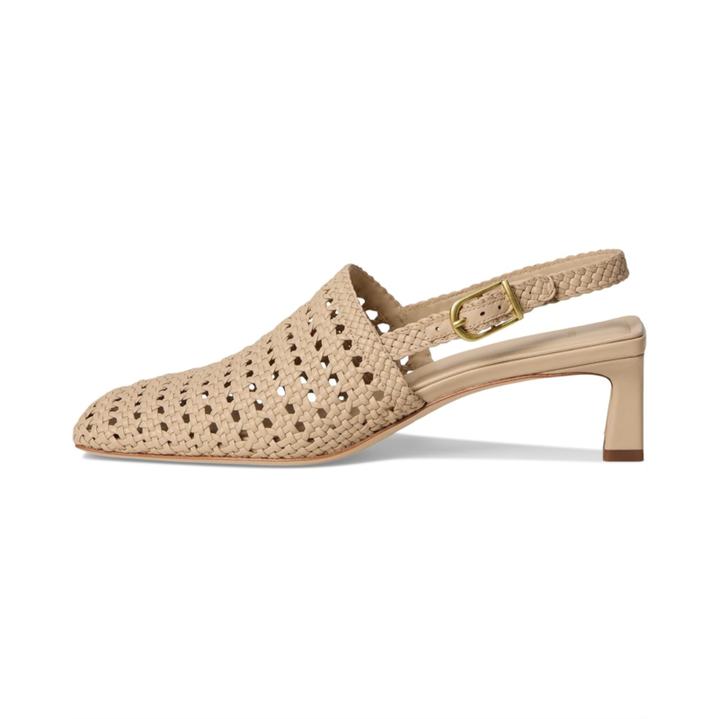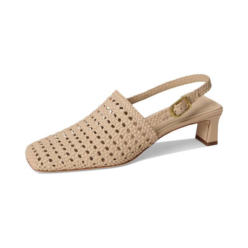 - Adjustable buckle closure at the slingback strap.