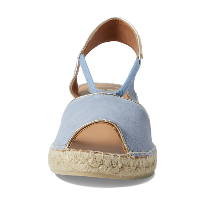 - Complete your sunny day look with the Toni Pons Bilda Sandals boasting a fusion of authentic style with traditional craftsmanship. These are framed with a soft suede or denim upper with a subtle metallic leather trim, a breathable leather lining, and a cushioned insole for all-day comfort. The design comes with an ultra-thin, stretch strap detailing for an easy slip-on fit and a jute-wrapped wedge heel for added style.