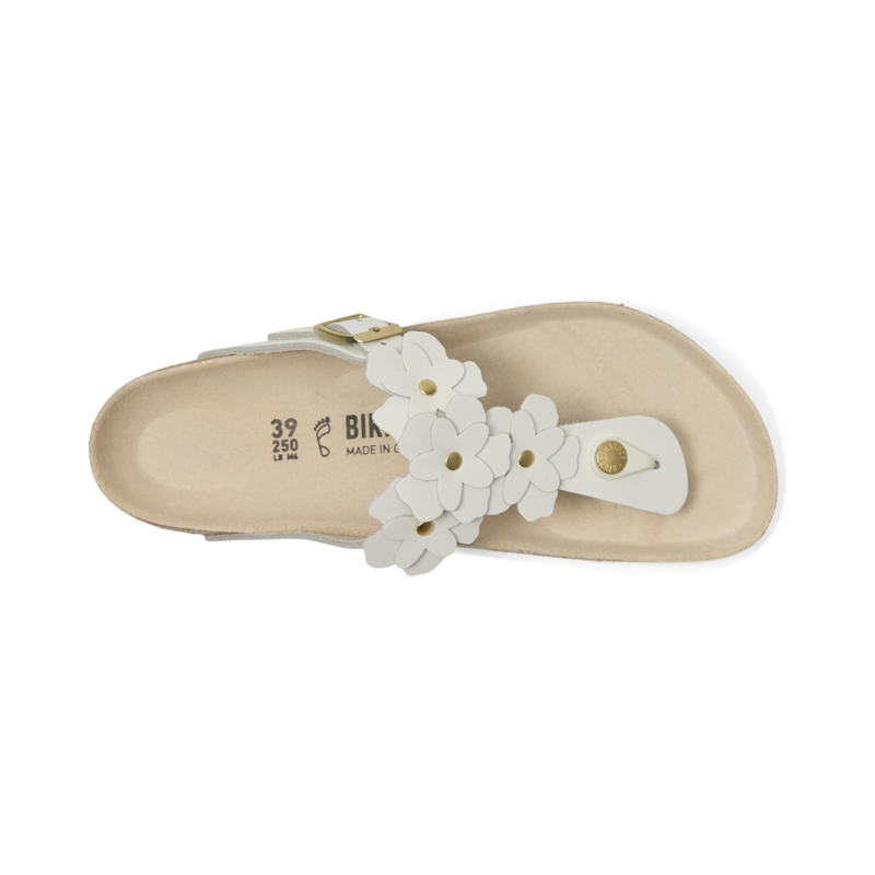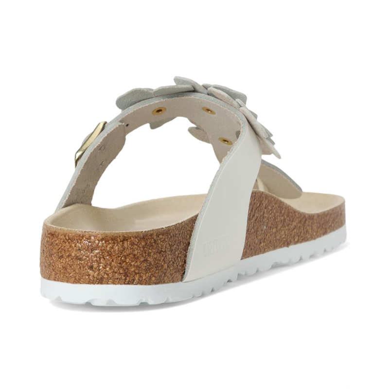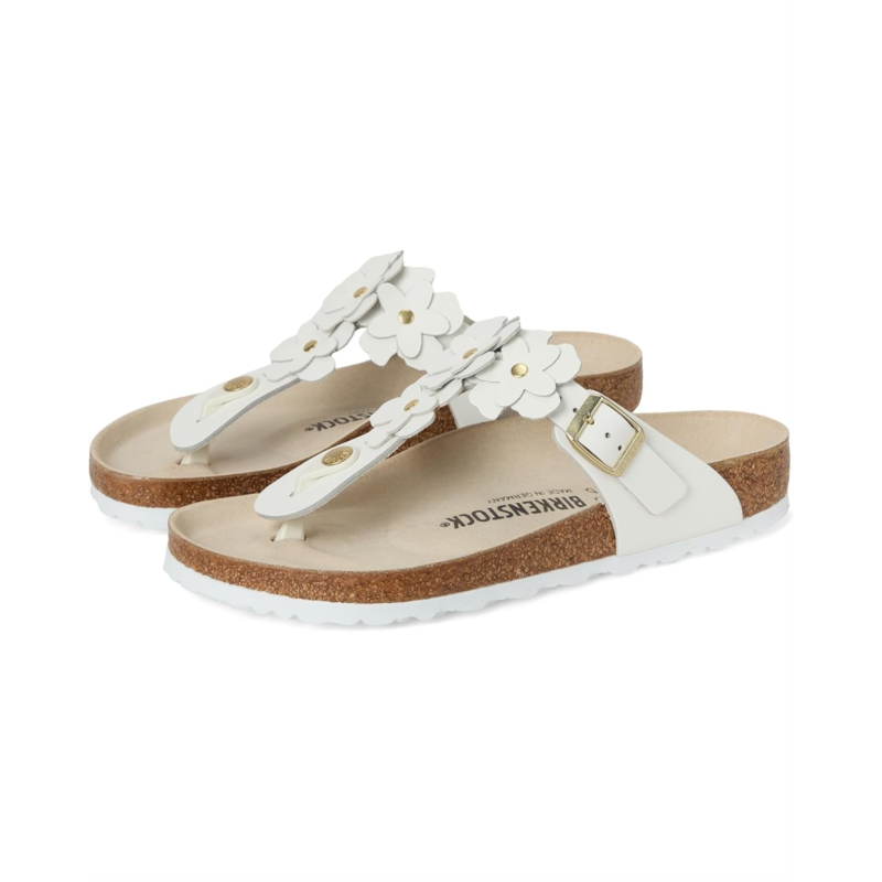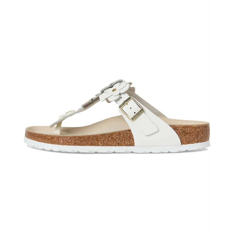 - Bloom into comfort by styling the Birkenstock Gizeh Flowers. Its supportive cork cradles your arches, while the adjustable buckle ensures a perfect fit. Soft suede lining and signature cork/latex footbed & midsole, they offer unparalleled comfort.