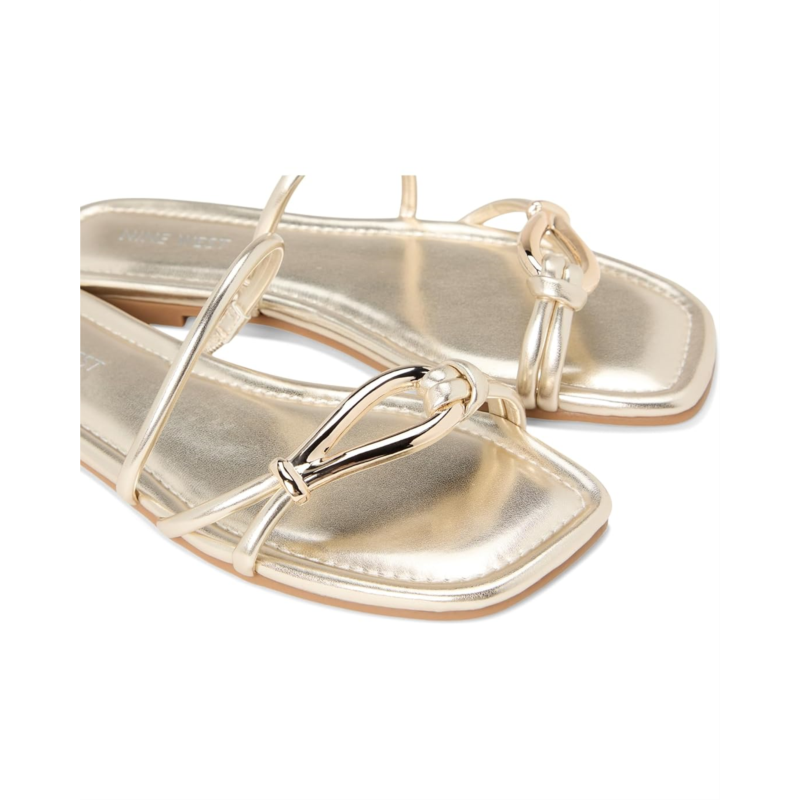 - The Nine West Tigra Sandal is the perfect wardrobe staple that will make you fall in love with its strappy silhouette and chic design. The slip-on style sandals feature a faux leather upper, comfortable insole, and a slight block heel.
