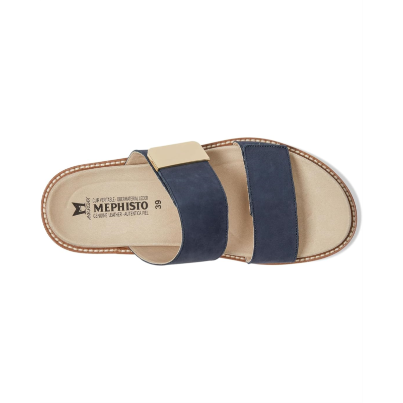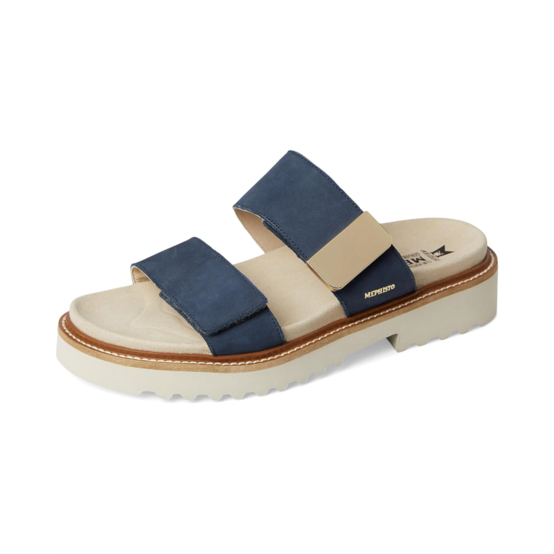 - The Mephisto Vonny sandals can be adapted to suit all styles and tastes. Their Soft-Air midsole and SHOCK-ABSORBER integrated into the rubber outsole reduce shock to a minimum for a smooth, fatigue-free walk. They combine comfort with a perfect fit, thanks to their adjustable hook-and-loop straps, one of which is embellished with a metallic ornament for a touch of fantasy. These slip-on sandals are made of a full-grain leather upper for added durability. The faux leather insole and breathable leather lining make them comfortable to wear for long hours.