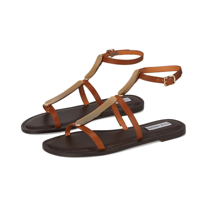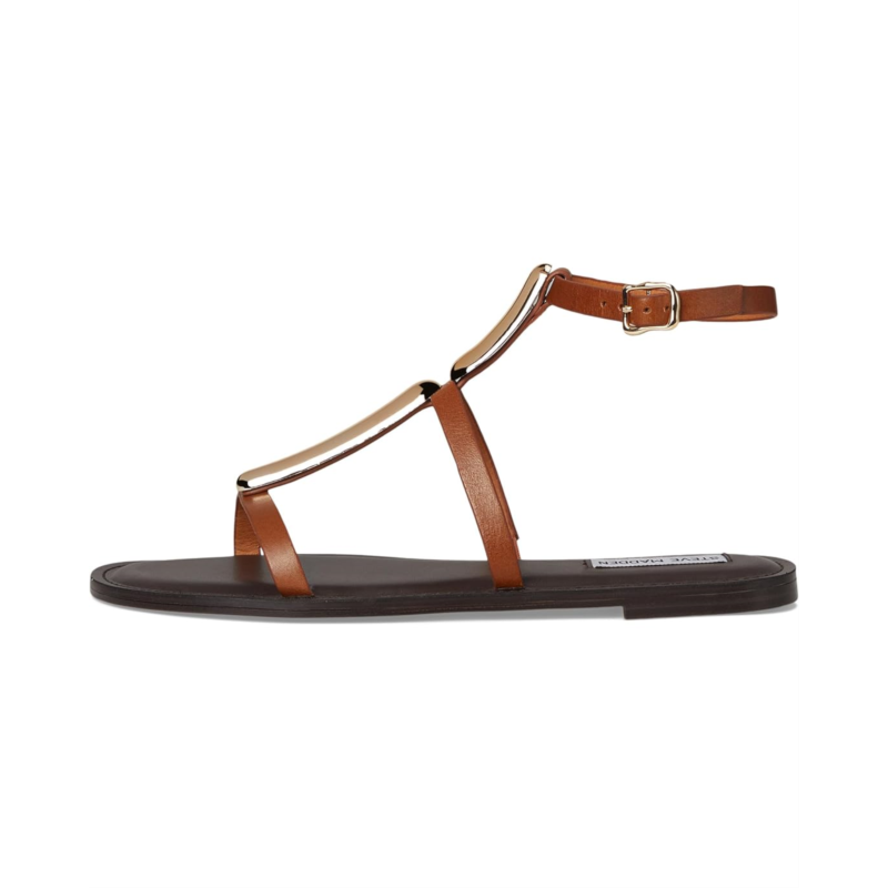 - Expertly crafted, the ALMA sandal boasts a sleek strappy design accented with luxurious gold hardware. These versatile flat sandals offer both style and comfort, making them the perfect addition to any wardrobe. Elevate your footwear collection with these sophisticated and timeless sandals.