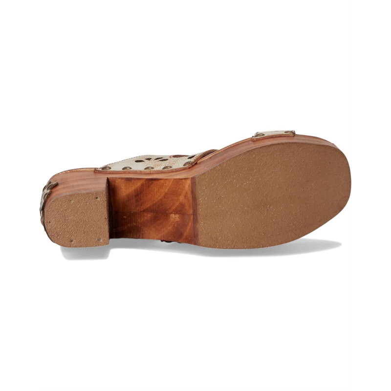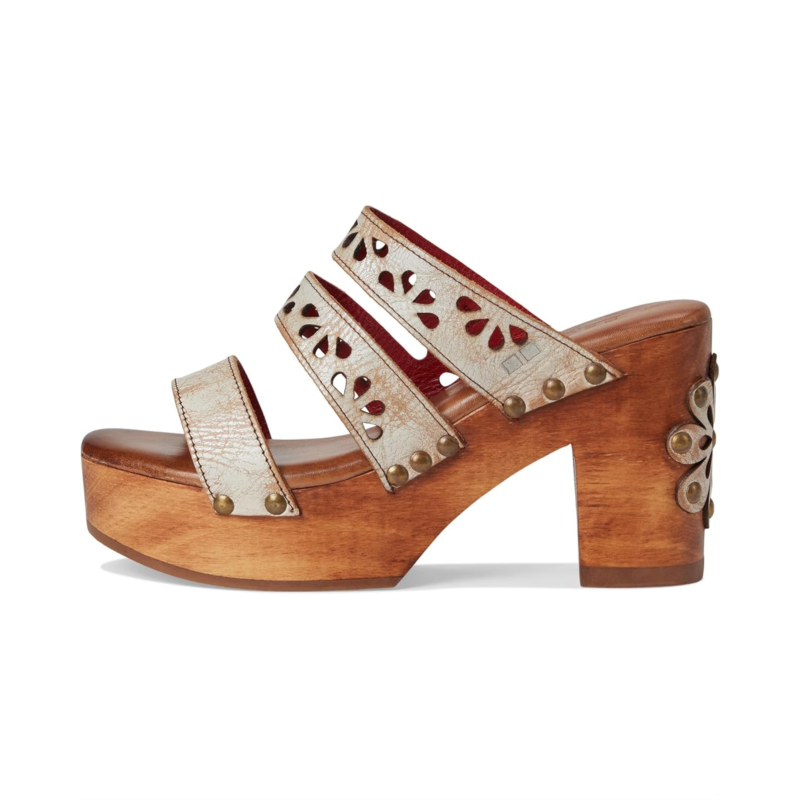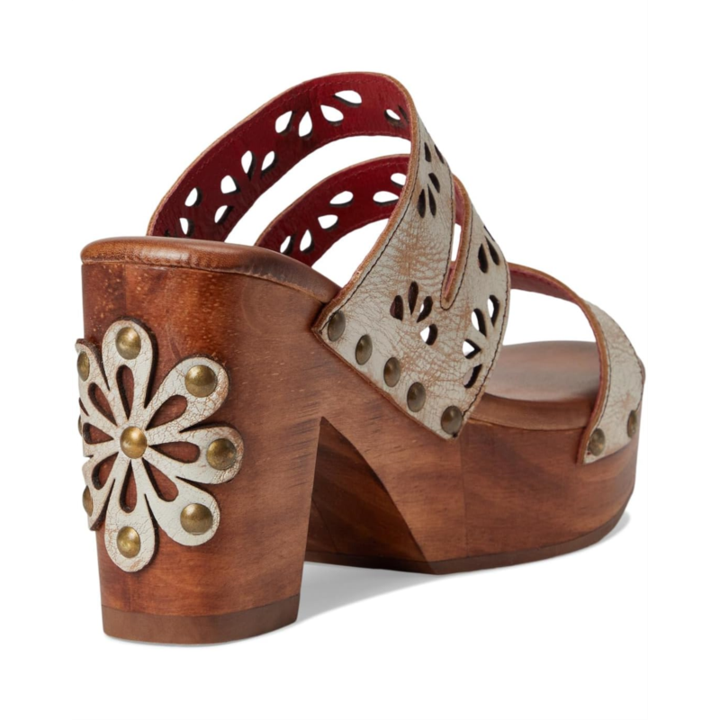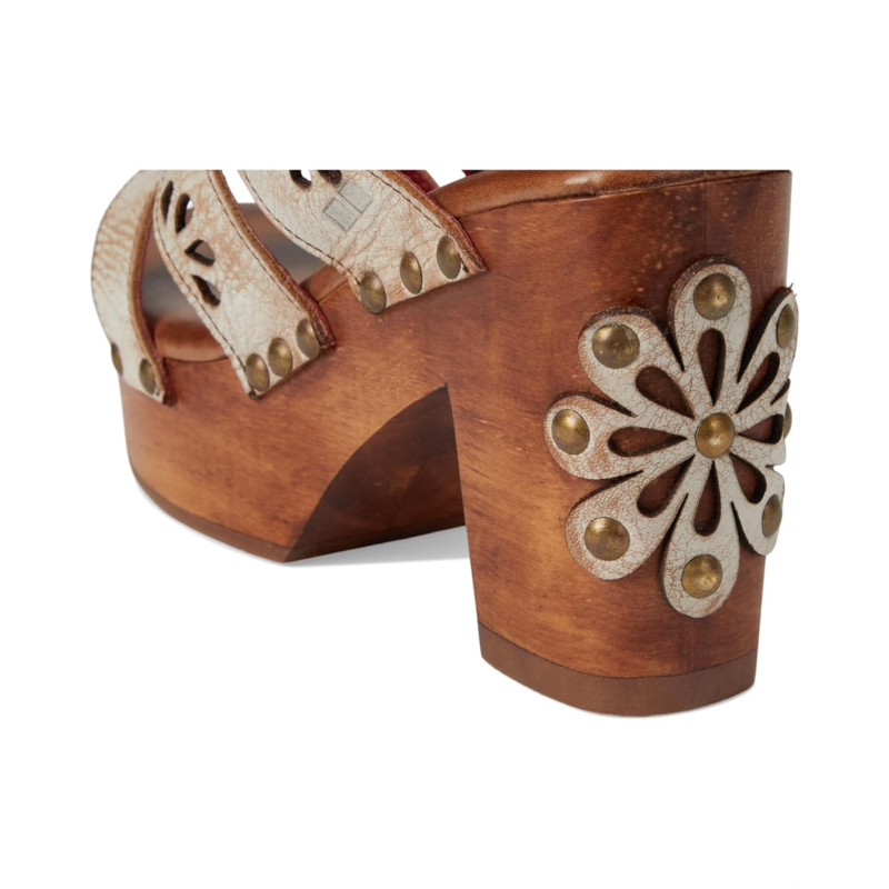 - KREEP offers flowers for you in a delightful heel that encapsulates a 70''s-inspired look. With its simple strappy design and tasteful floral cutouts on its two top straps, this style exudes whimsical confidence and style. The natural wooden heel, accented by metal studs, adds a touch of boldness to its delicate charm. A leather patch at the back of the heel enhances the playful floral theme, making KREEP a statement piece for those who love to express their unique individuality.