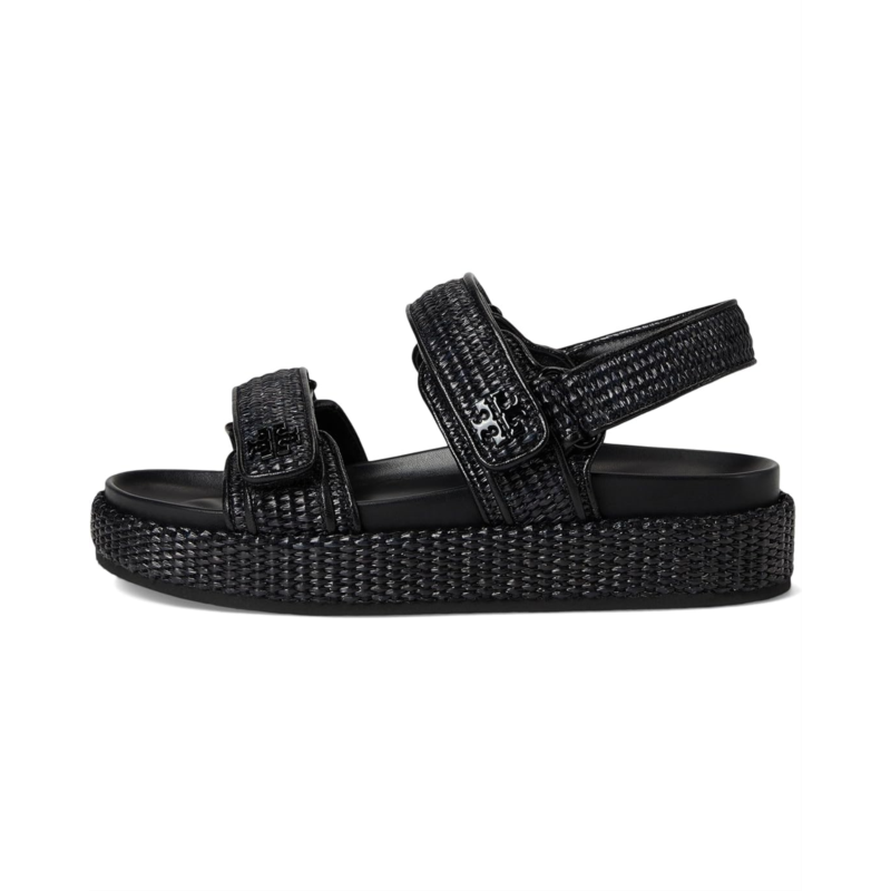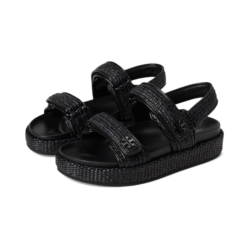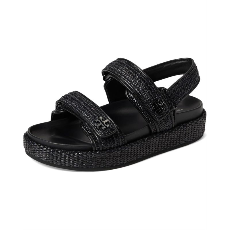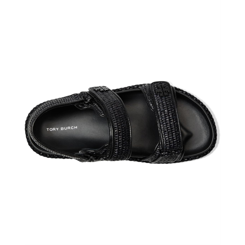- Walk with comfort and style wearing the Tory Burch Kira Sport Sandals. Crafted from leather upper, lining, and insole, this pair of sandals features open round toe, two strap detailing, hook-and-loop closure, and brand detailing on the footbed.