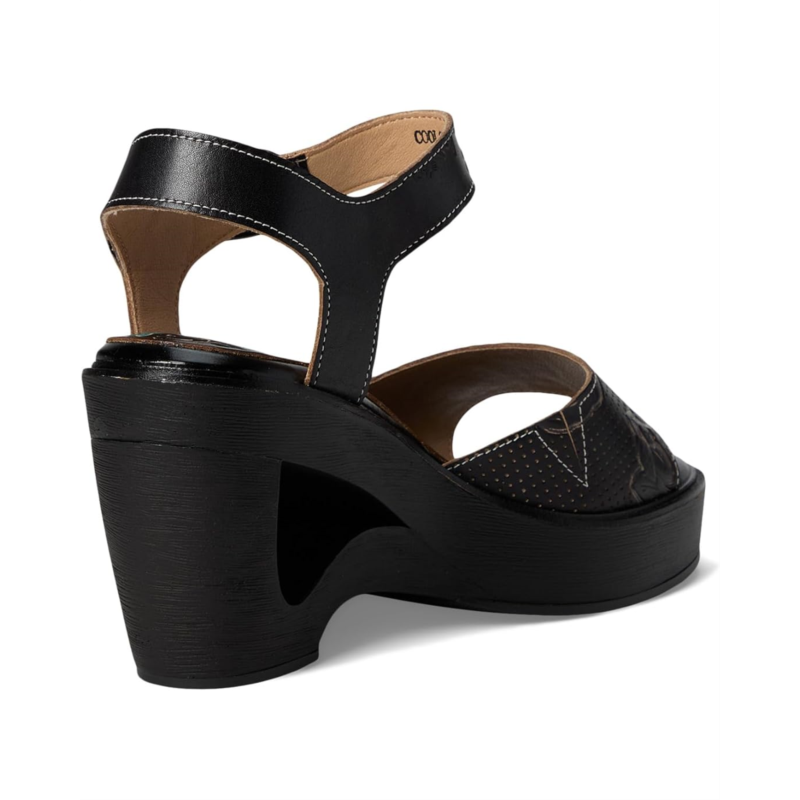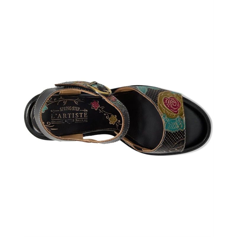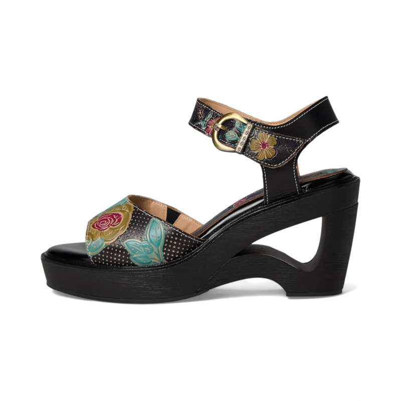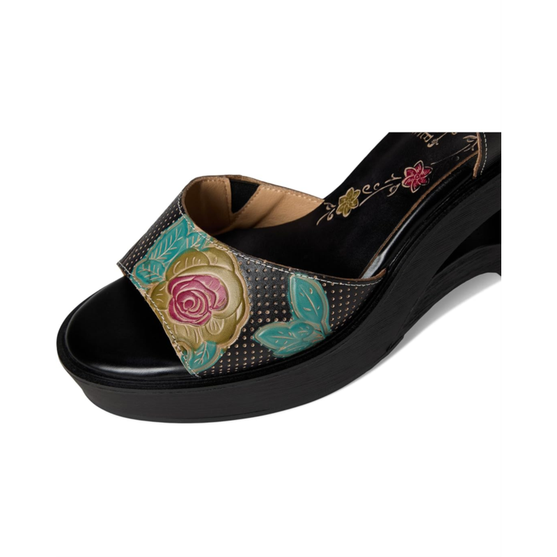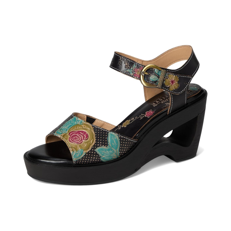 - Let your shoes do the talking, introducing Coolchic from L''Artiste by Spring Step. Crafted with a luxurious leather upper and adorned with a hand-painted floral design, these statement heels bring a touch of whimsy to every step. The architectural cutout wedge heel elevates your style with a modern, fashion-forward edge, while the hook-and-loop closure ensures a secure, customized fit. Designed for both beauty and comfort, the faux leather lining and insole provide a soft, cushioned feel, and the durable rubber outsole keeps you steady wherever you go. With an elegant open-toe silhouette, these heels are your go-to for effortlessly chic looks.
