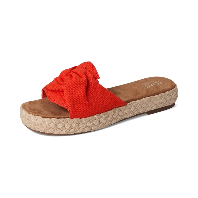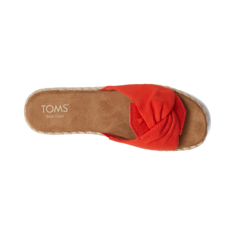 - Featuring a softly squared toe shape and a chic knot detail, the TOMS Abby Slide exudes effortless charm. The Custom CloudBound foam insoles provide exceptional comfort and support for all-day wear, while the rope-wrapped midsole adds a touch of rustic elegance.