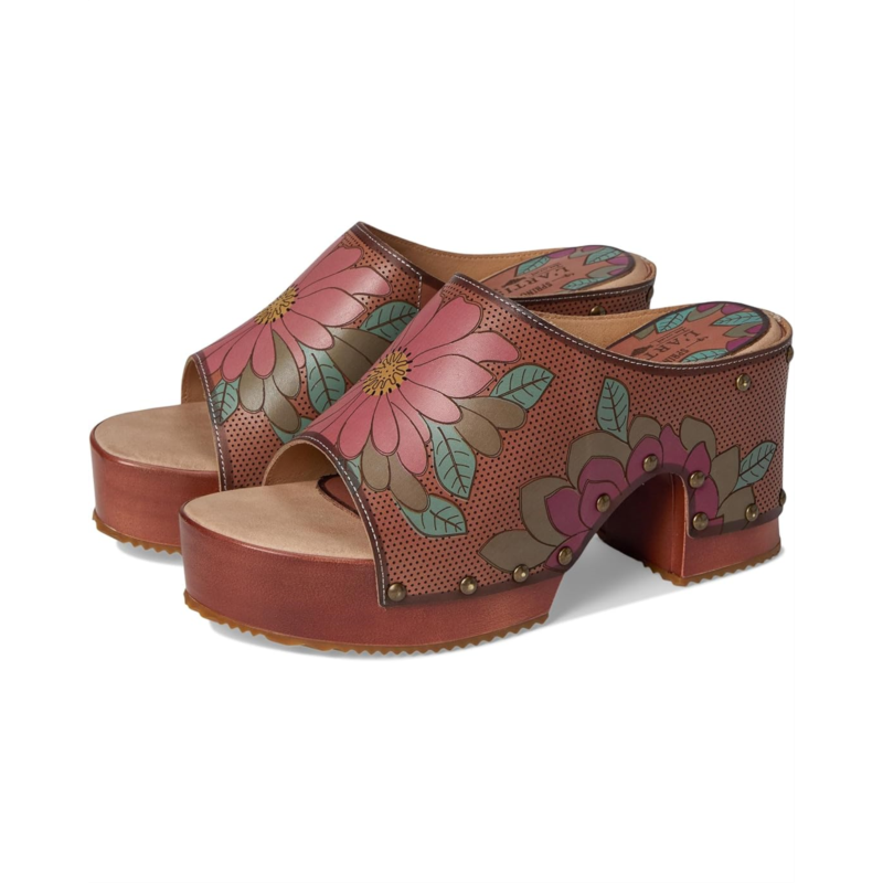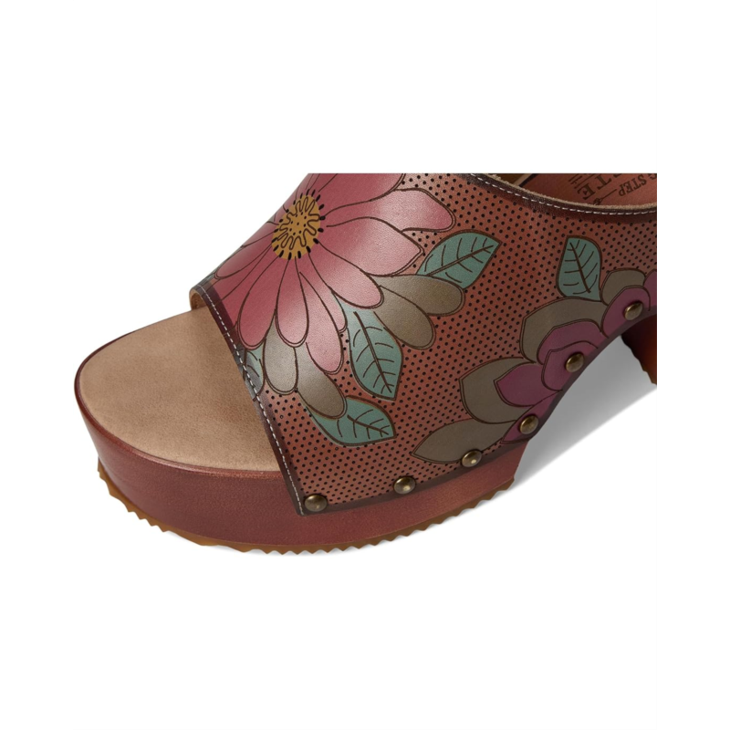 - The L''Artiste by Spring Step Teeshirt sandals are cute platform heels that are blooming with style. Crafted from supple leather, these open, round toe shaped sandals feature a hand-painted flower print in full bloom on the leather upper, accented by bronze studs that create a hooded, protective effect by wrapping around the entire rubber outsole - which is how they got their name. These heeled sandals are made of a faux leather insole and lining. With a plush, hand-painted footbed, each step you take will be as comfortable as they are eye-catching.