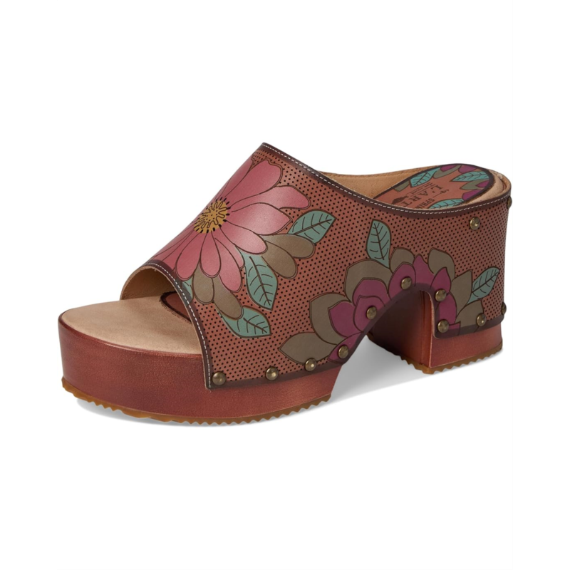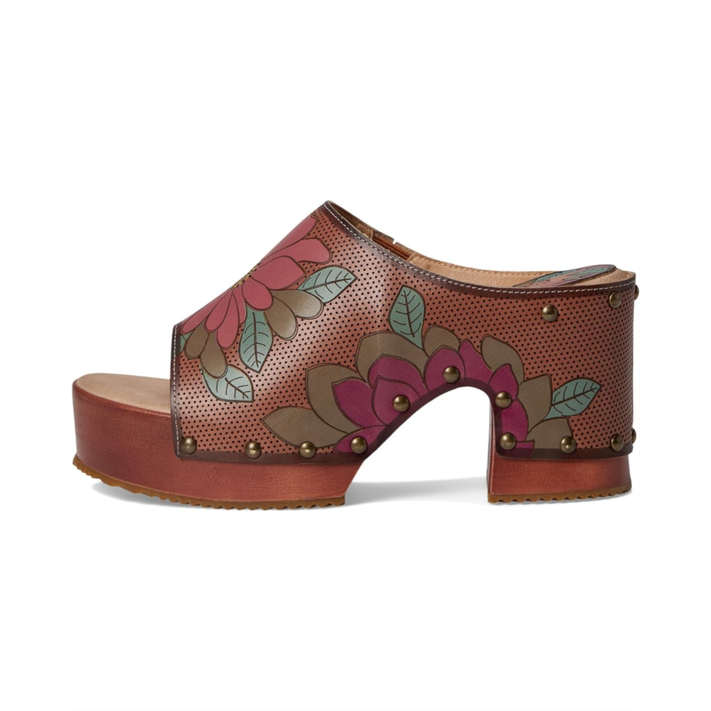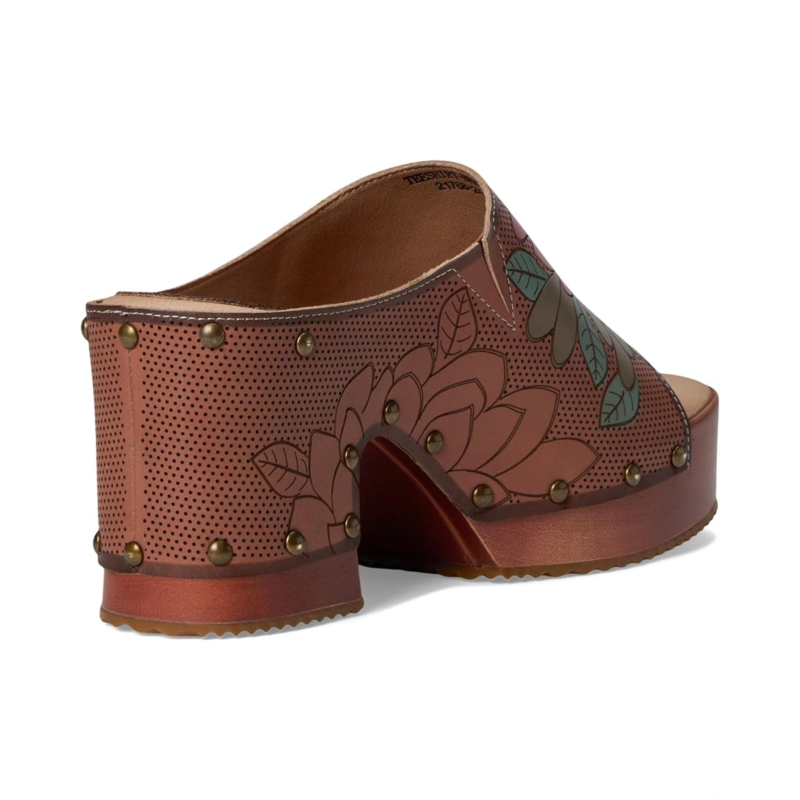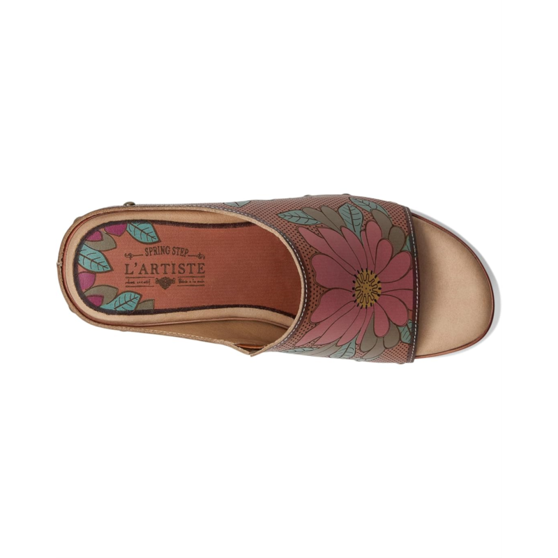 - The L''Artiste by Spring Step Teeshirt sandals are cute platform heels that are blooming with style. Crafted from supple leather, these open, round toe shaped sandals feature a hand-painted flower print in full bloom on the leather upper, accented by bronze studs that create a hooded, protective effect by wrapping around the entire rubber outsole - which is how they got their name. These heeled sandals are made of a faux leather insole and lining. With a plush, hand-painted footbed, each step you take will be as comfortable as they are eye-catching.