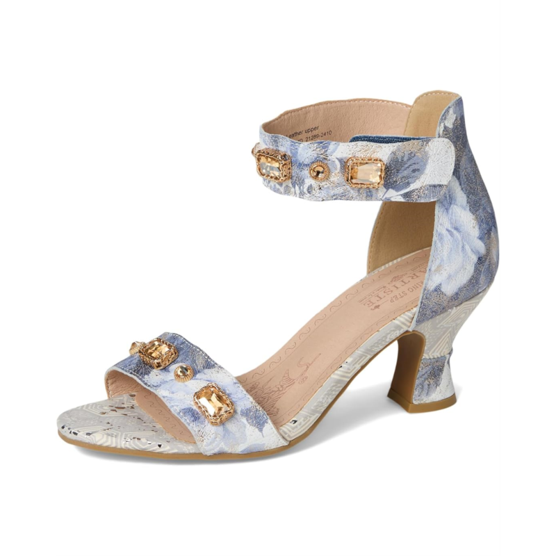 - The L''Artiste by Spring Step Aquavelva sandals pair perfectly with everything from flowy dresses to distressed denim, elevating any outfit with their eye-catching metallic shine and luxurious leather construction. Their printed leather upper is styled with rhinestone detail for an eye-catching appeal. These heeled sandals are designed with a faux leather insole and lining, making them comfortable to wear for long hours.